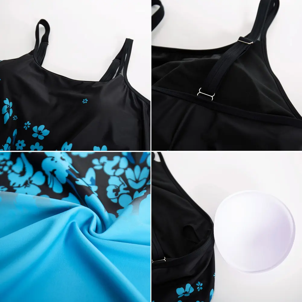 Don't be afraid to try this plus size women! This is a good quality suit. Good material and seams. A thoughtful design and cut. I am plus size with a full tummy area. This suit covers the tummy area with an a-line cut that drapes over my stomach and doesn't cling. Shorts are lined.