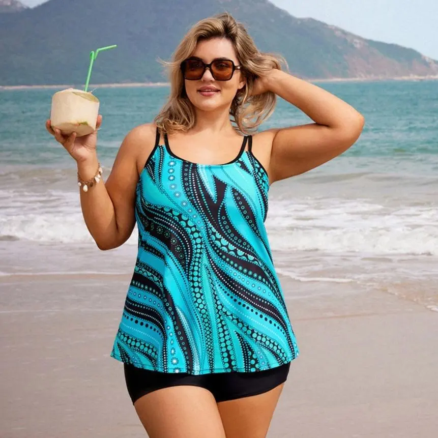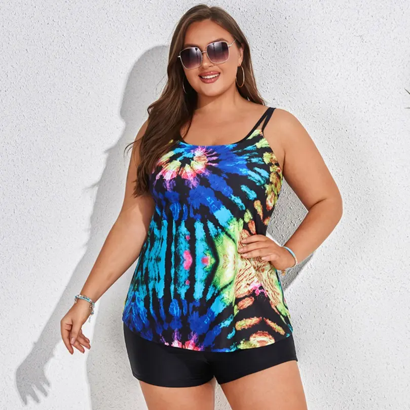 Loved this two piece bathing suit. It is definitely a curvy girls perfect suit. Colors are brilliant and it hides the areas that a plus size person wants hidden. Will be buying another asap for summer.