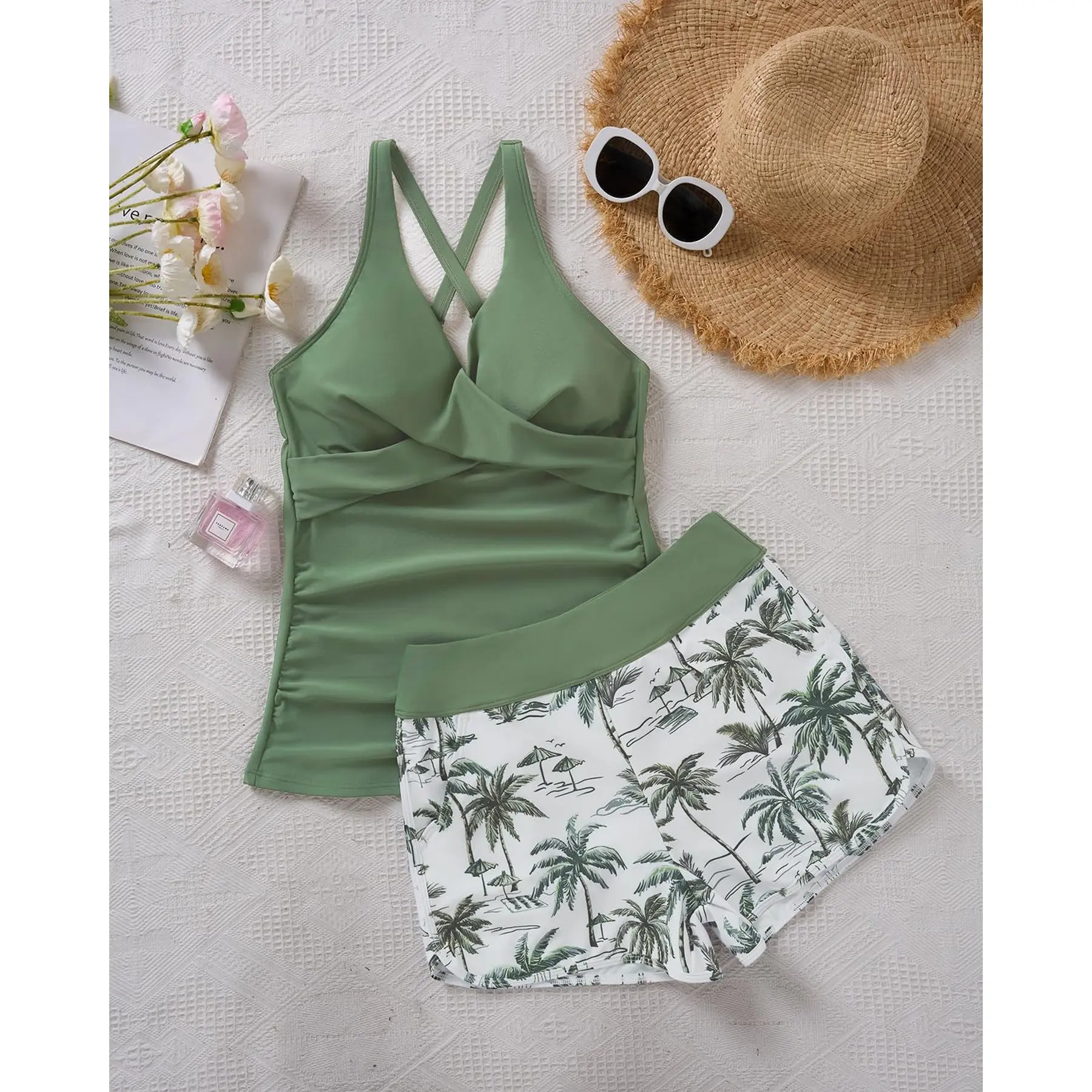 ·Available in Various Sizes: S(US 4-6), M(US 8-10), L(US 12-14), XL(US 16), XXL(US 18). Please refer to the Size Chart to choose the most suitable size before purchasing. Whether you're lounging by the pool or playing beach volleyball, our tankini with pocket shorts is the perfect choice!