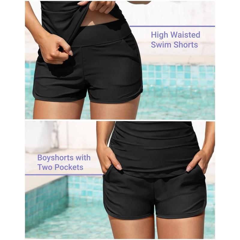 ·Tummy Control Tankini Set: With front ruched detail and a longer top length, this tankini covers your belly to create a slimmer look. The high-waisted shorts provide additional tummy control, ensuring you feel confident and comfortable.