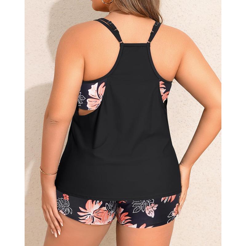 Β·Floral Plus Size Two-Piece Swimsuit: This stylish tankini set features a lined swim top paired with high-waisted boyshorts, offering both elegance and coverage.