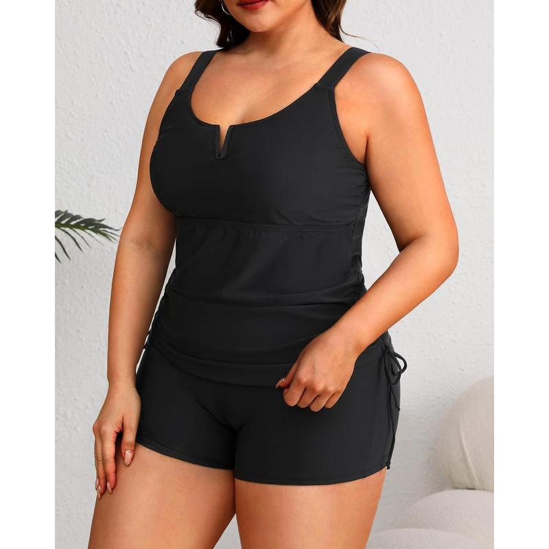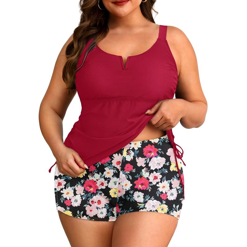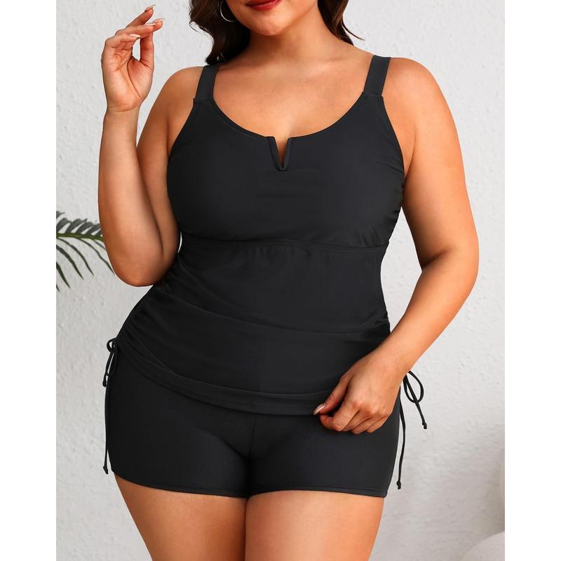 ·Plus Size Tankini Swimsuits for Women: This plus size bathing suit features a round neck with a V-wire and a side drawstring design, making you look sexy and cute.