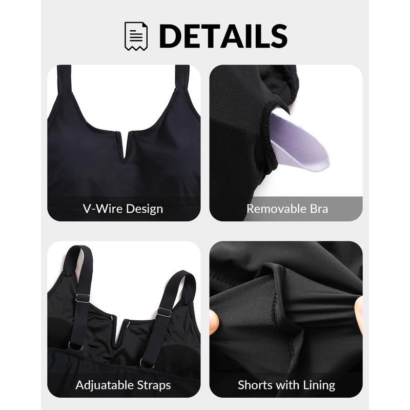 Yonique Plus Size Tankini Two Piece Bathing Suit with Shorts V-Wired Swimwear
