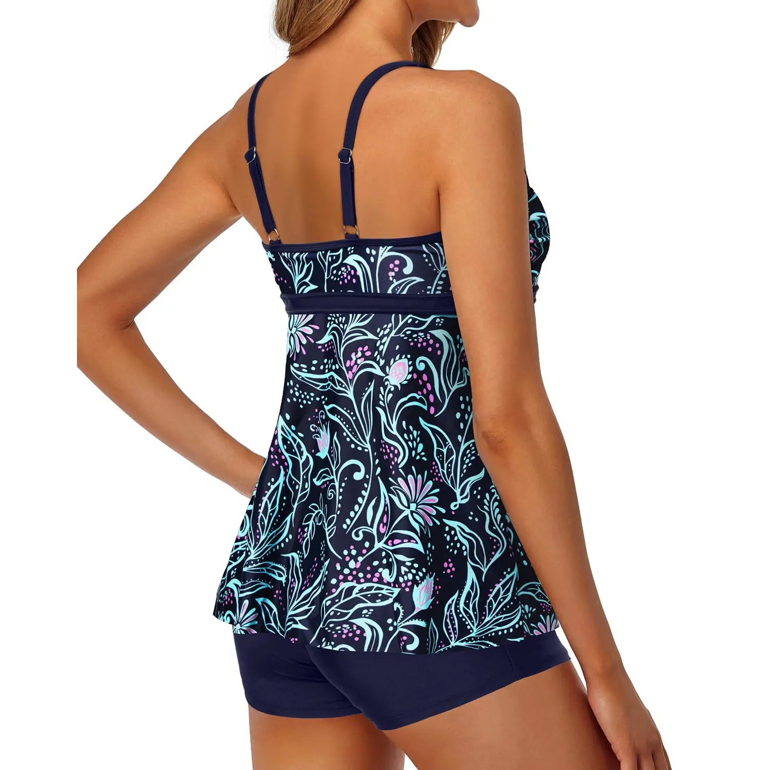 Love the way this fits! Hides the tummy and adjustable straps holds everything in place.The shorts are higher waisted and comfortable .
