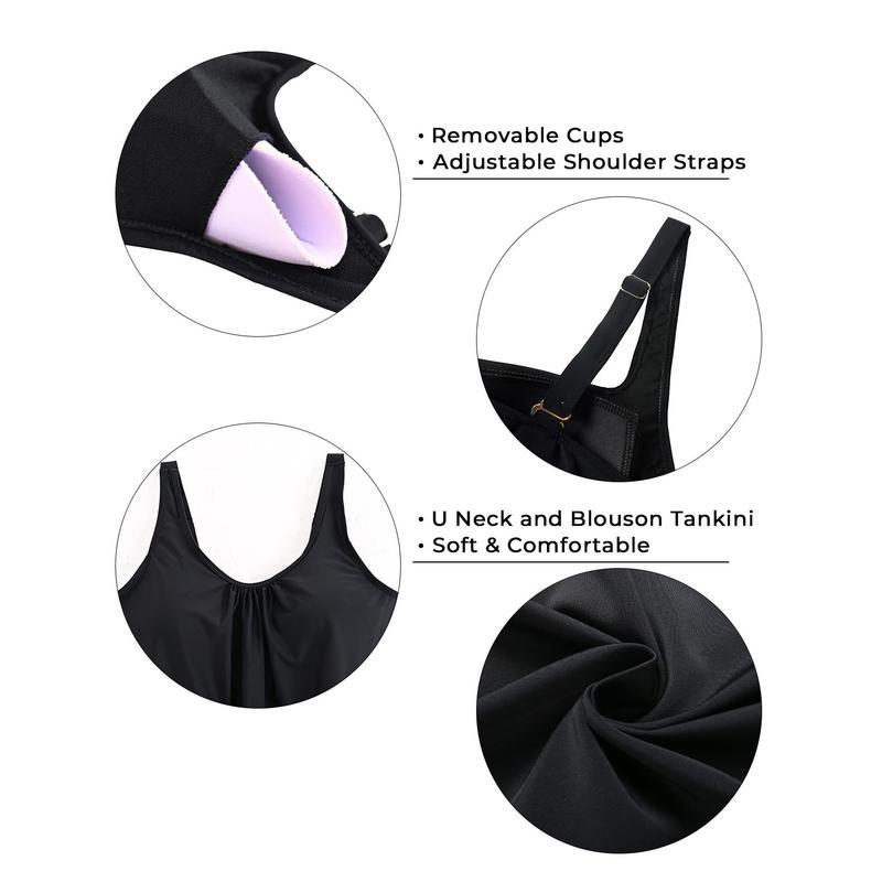 This 2 piece tankini is very cute on and it's comfortable. Runs true to size. I would have given it 5 stars, but I felt that the material quality of the swimsuit's bottoms was not as good as the top's.