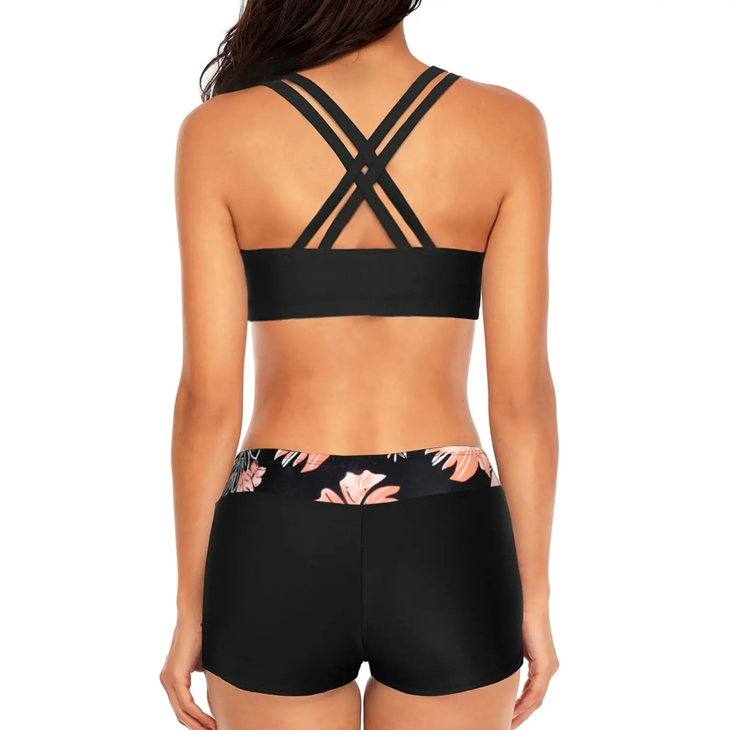 ·Casual tankini set is made of comfortable fabric. Sexy bikini top with criss cross back design matching with high waist tummy control boy short is perfect for a beach vacation, basic aqua fitness, a swimming pool party and other occasions.