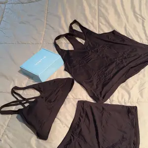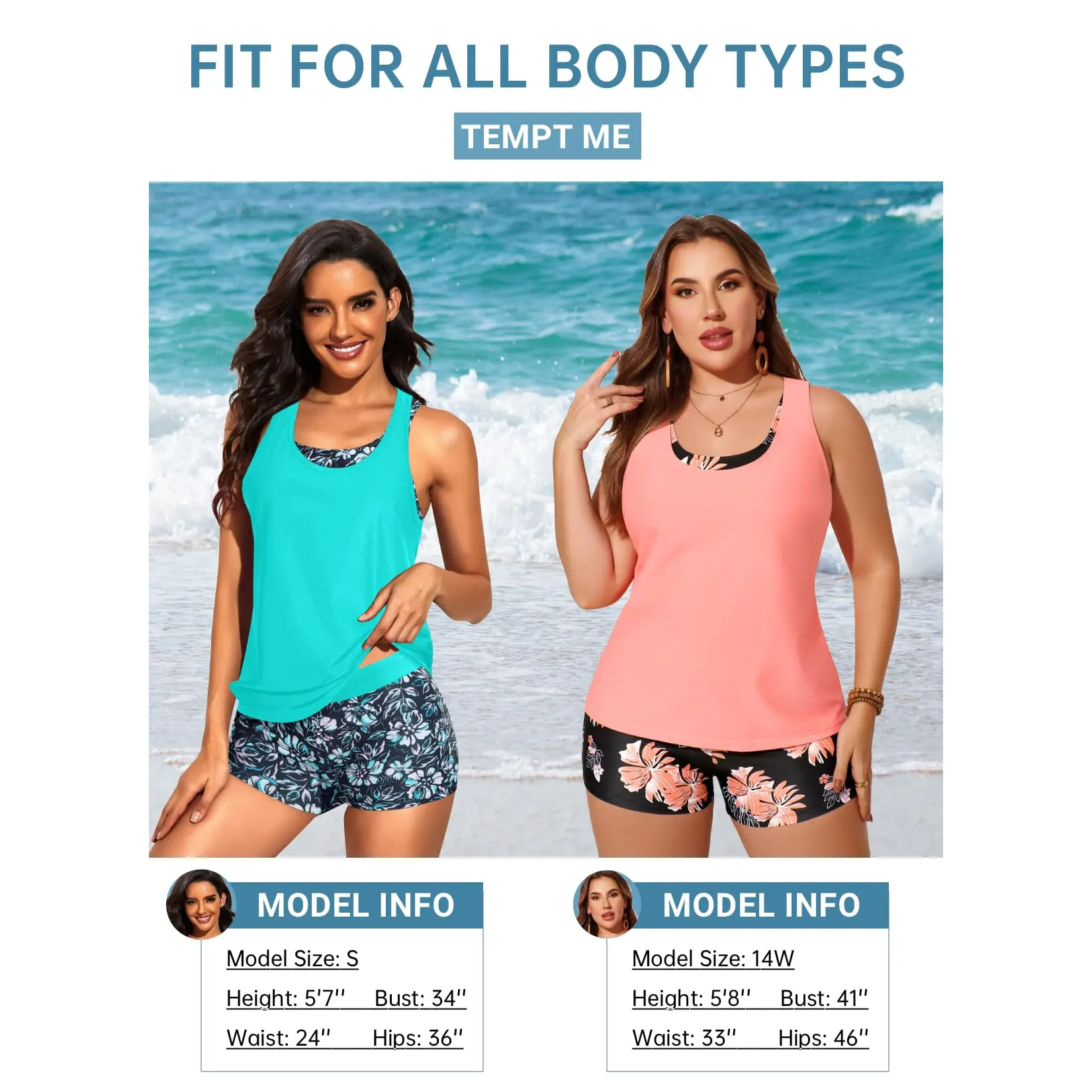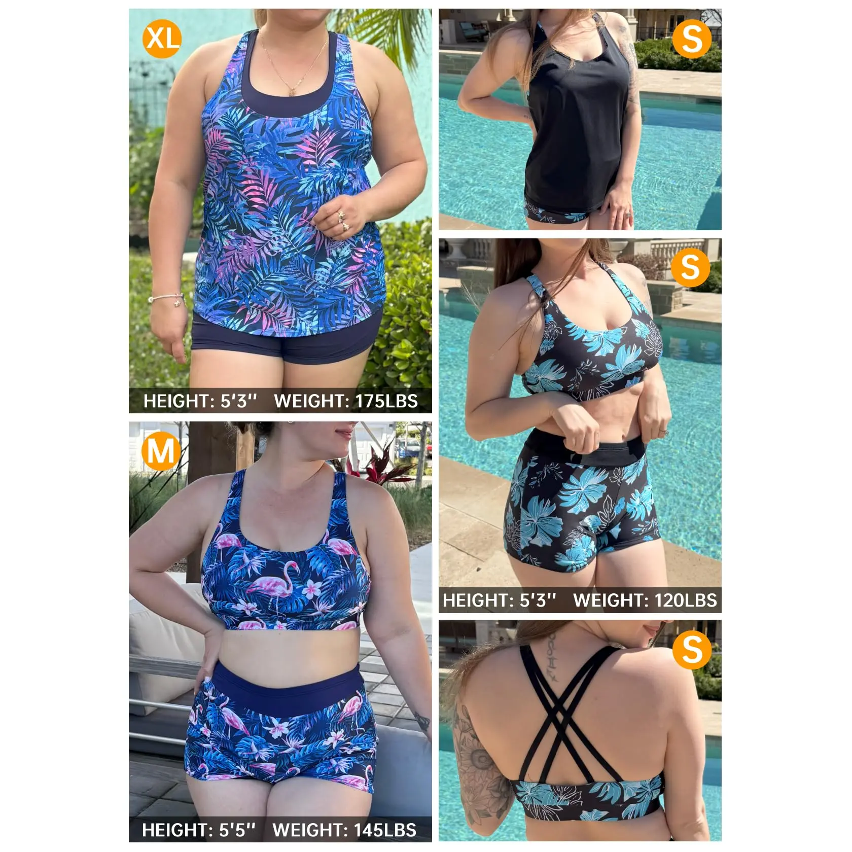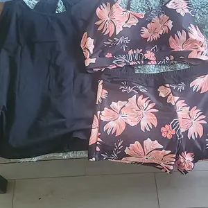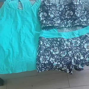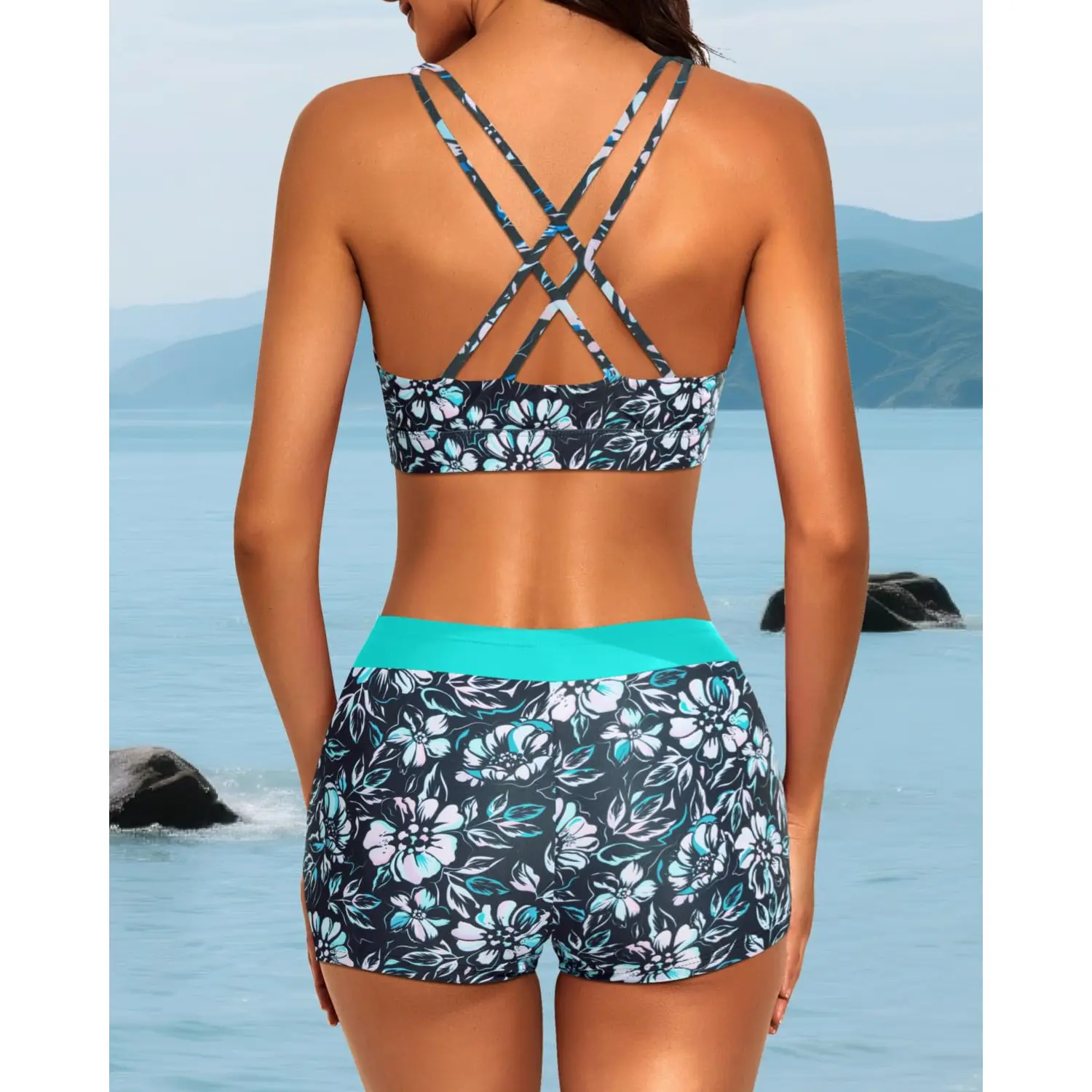 ·Tankini with shorts: Blue green three piece tankini bathing suit includes a swim tank top, sports bra, and boyshorts, which offers you two combinations as bikini with shorts or three-piece tankini set.