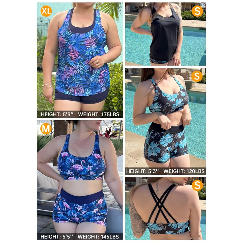 ·Swim shorts and top for women: This sports bra bikini top comes with removeable padded bras paired with boyshorts. Suitable for women, teens, girls, juniors, and moms.