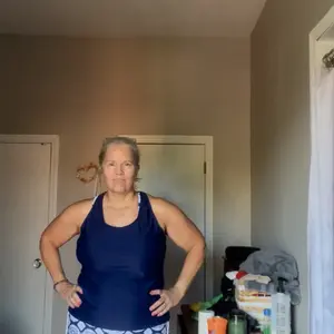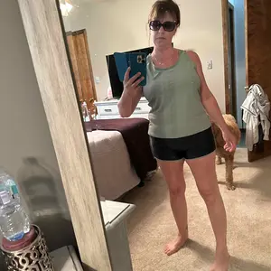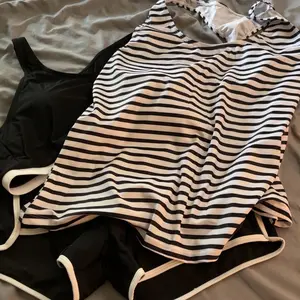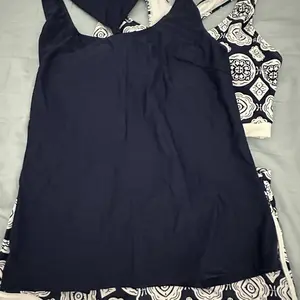 It’s so hard to find a fairly loose tank without underwire. I’ve been looking for something like this for a long time. The top and bottom are fine, but I’m not sure I’ll wear those as often. There is a tummy control band and I like that the cups are removable.
