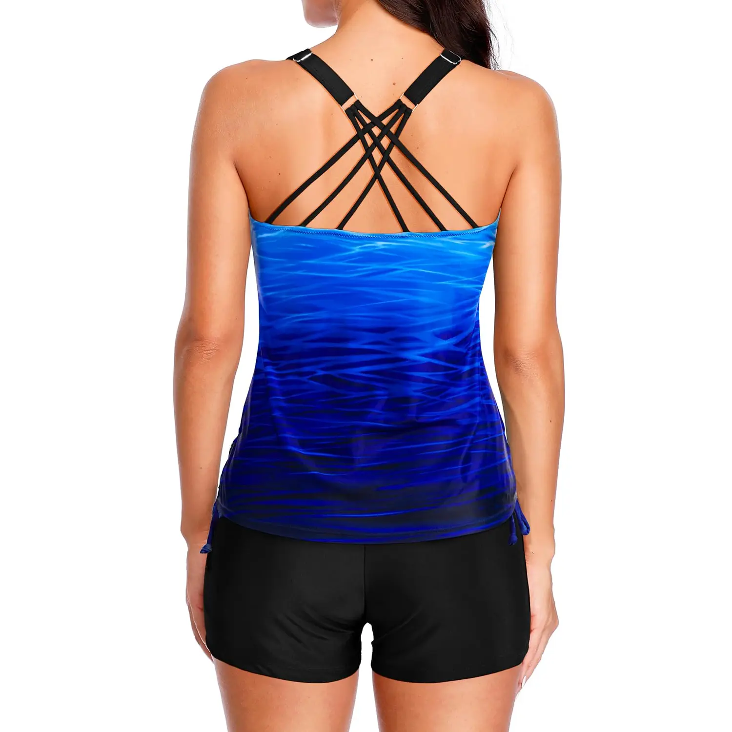 ยทThe criss-cross strappy back is chic and provides good support. The high-waisted boyshorts of the bathing suits make you feel relieved to show yourself and do some sports outside.