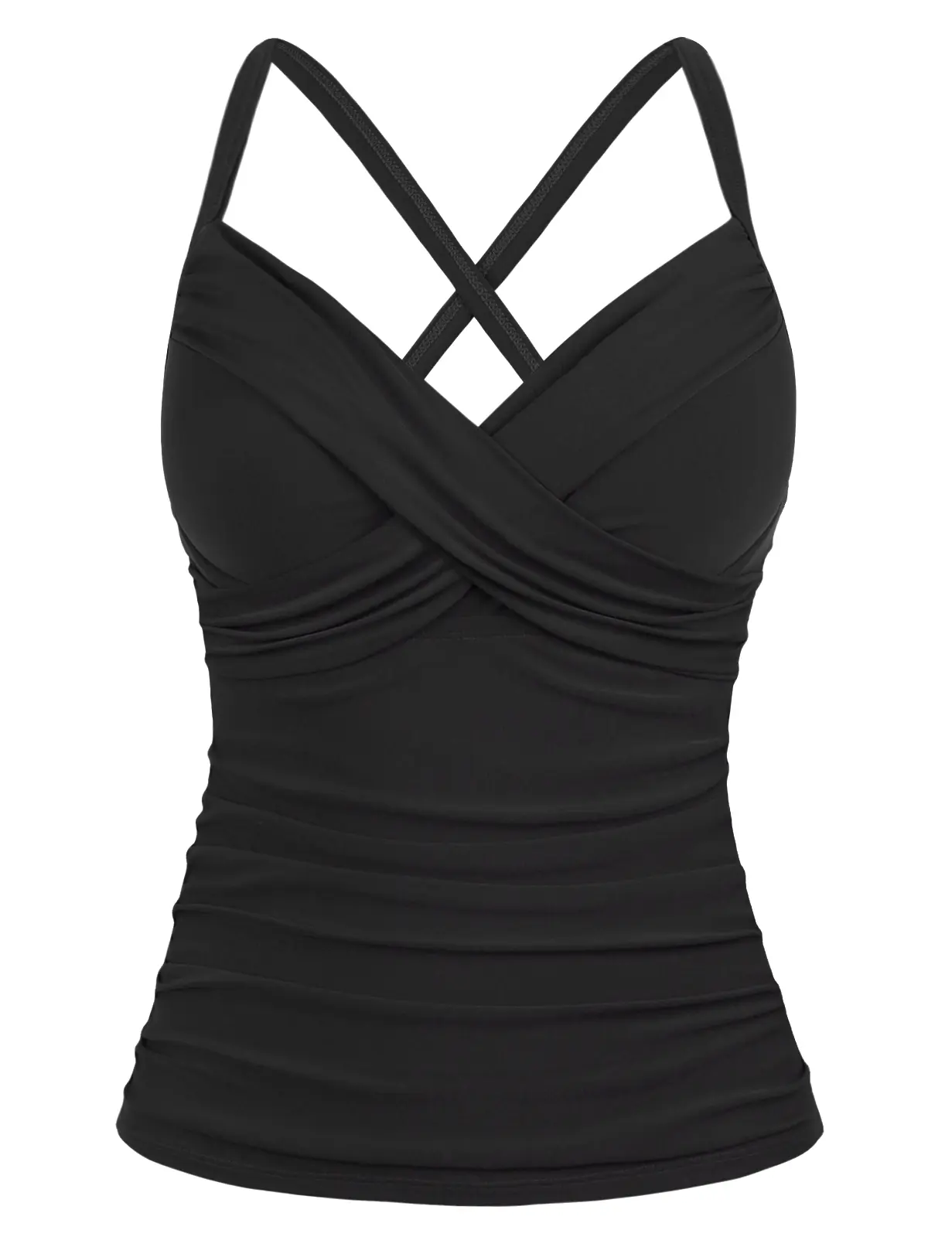 ·Tummy control swimsuit top, side shirring details, figure flattering, tankini top swimwear with tummy control mesh lining, create a slimming silhouette.