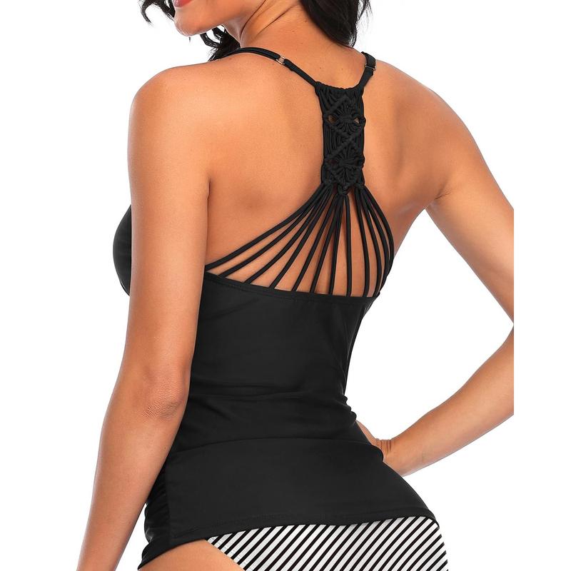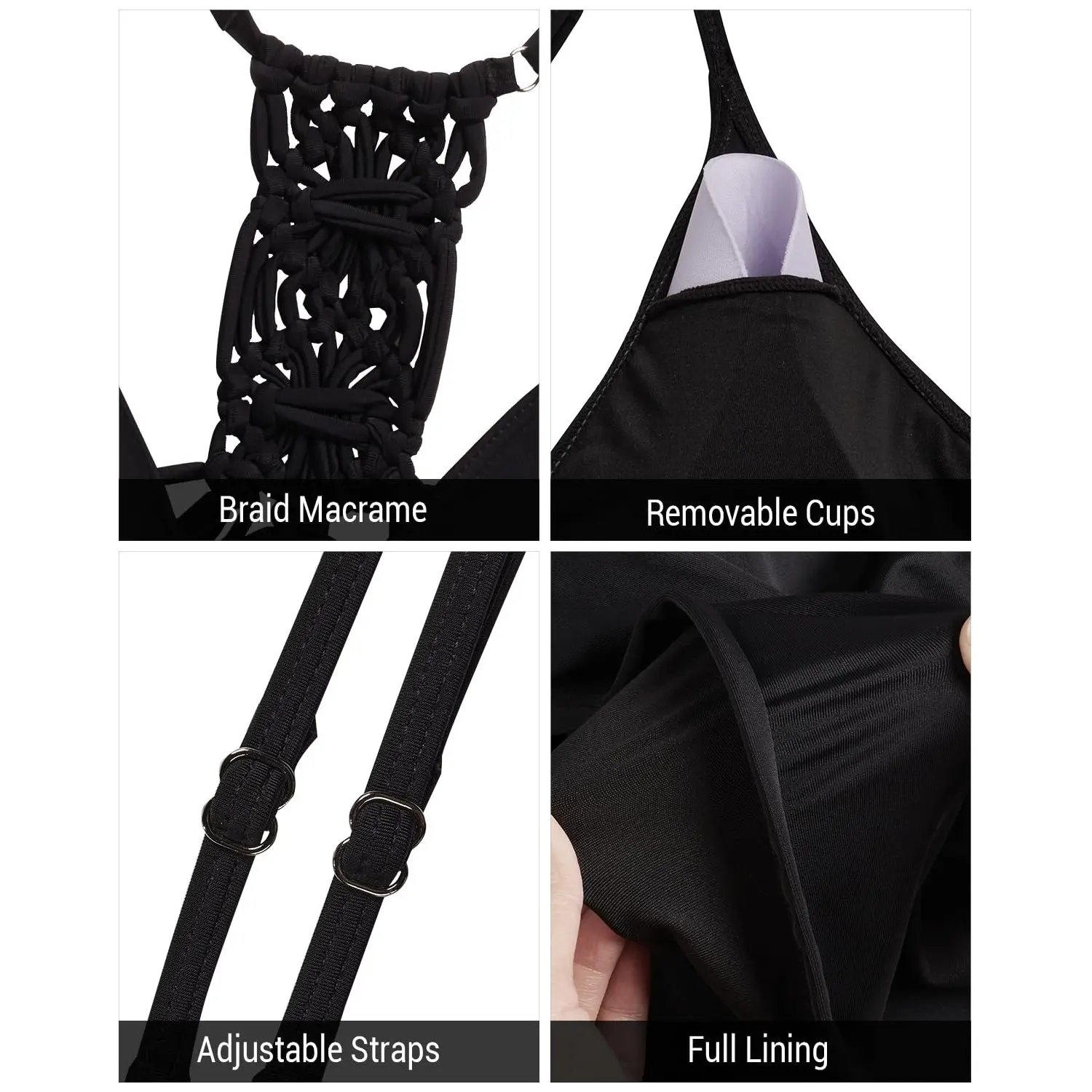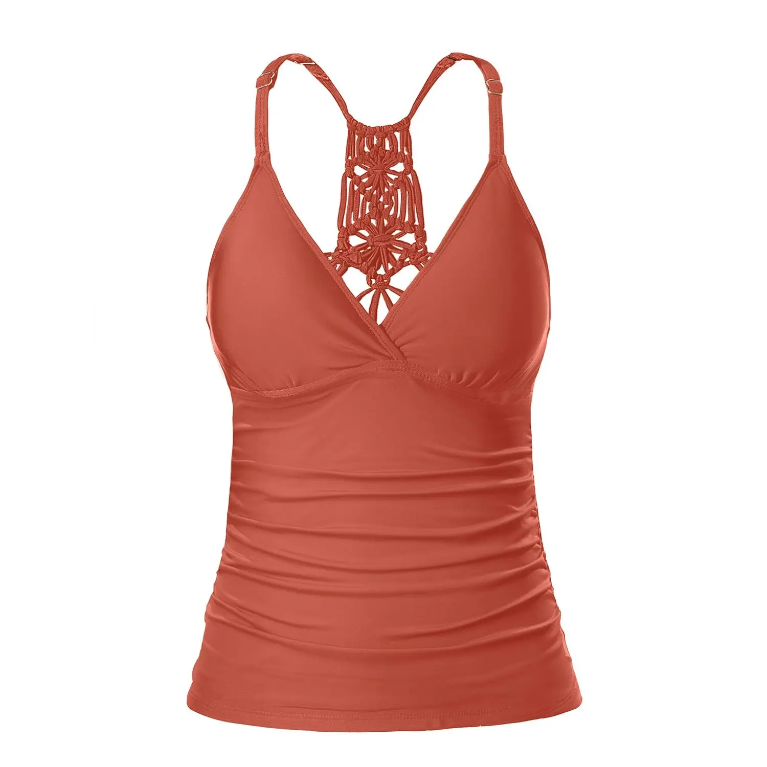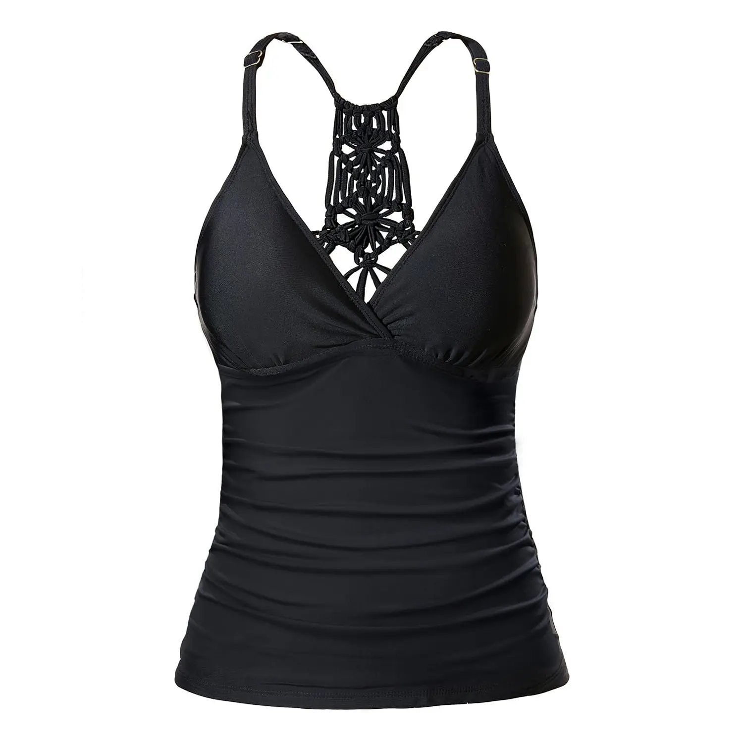 ·Bathing Suit Tops for Women: This tankini top features a v neck and handmade braid macrame at the back. Removable soft padded, adjustable shoulder straps, fully lining makes it not see-through when wet.