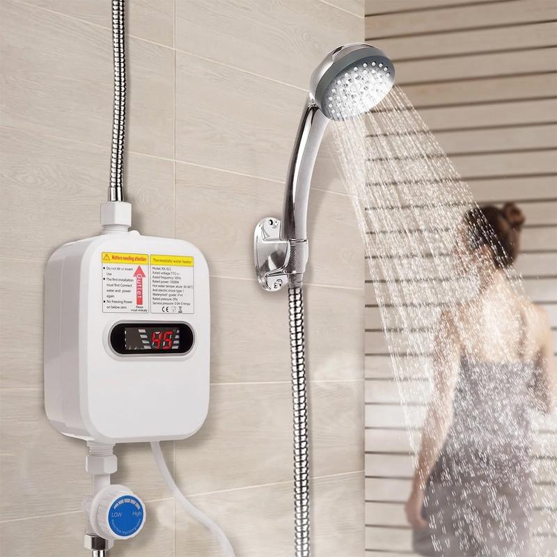 This 3500W Electric Tankless Water Heater Shower Head Set provides instant hot water with an LCD display. Ensure proper installation and stable water pressure for optimal performance. Include a silicone gasket for water leakage prevention.