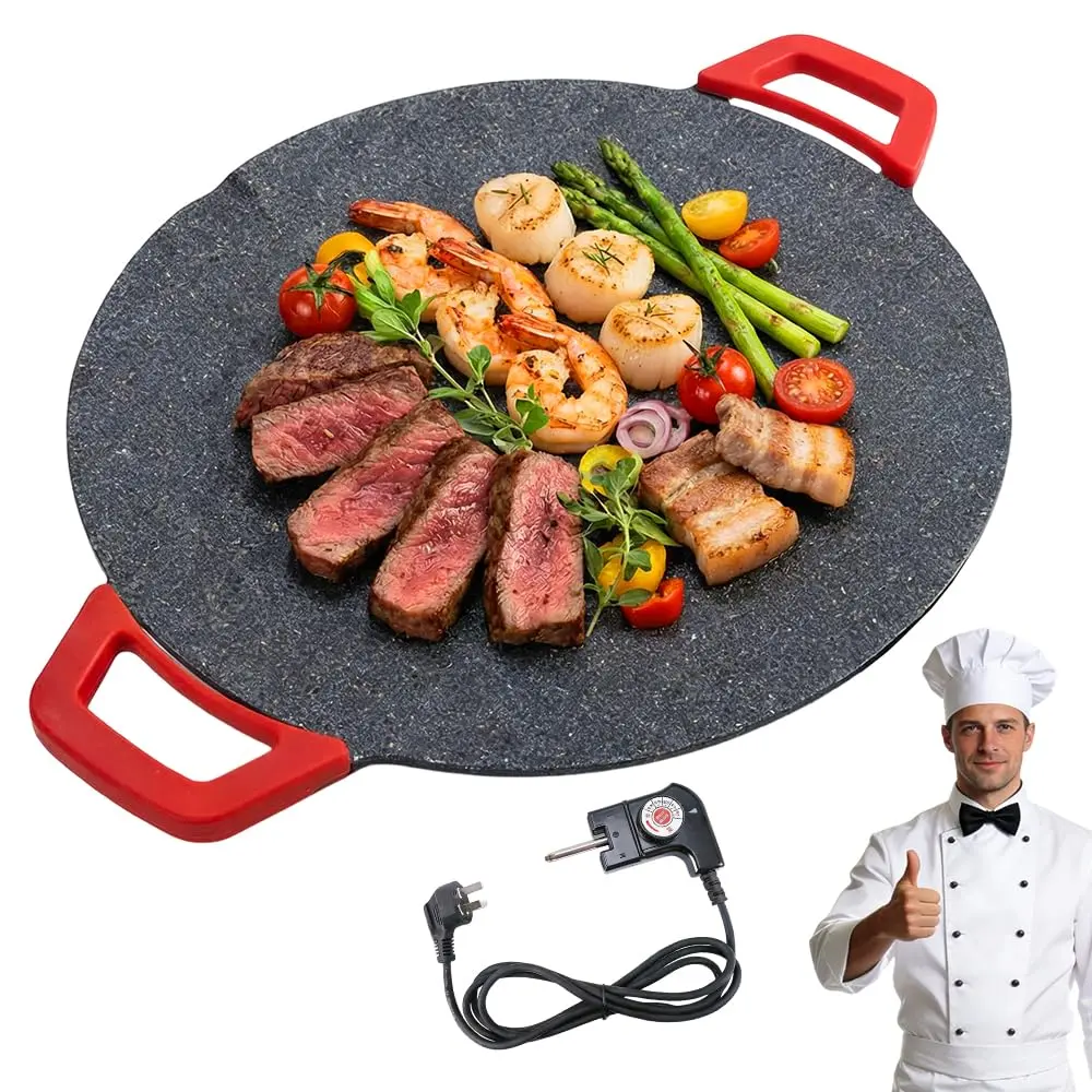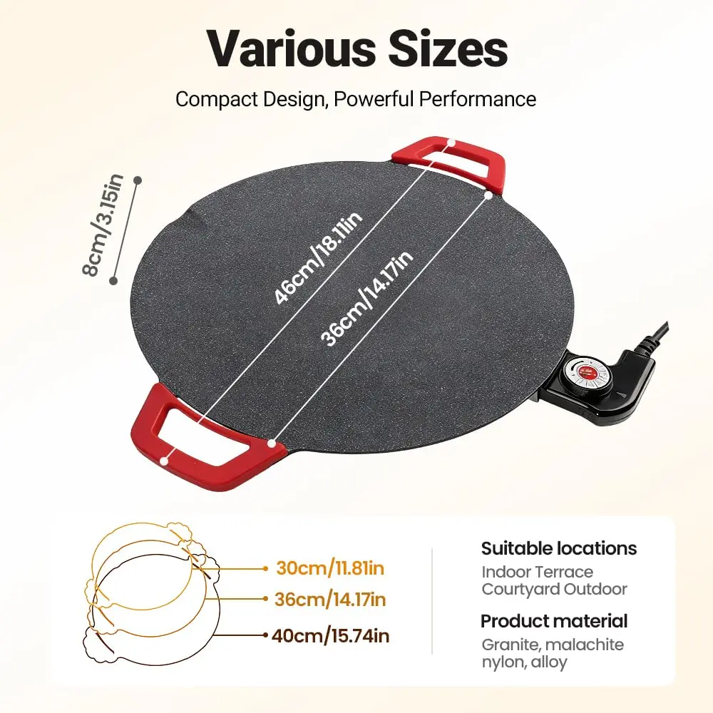·【Large 14-Inch Nonstick Griddle for All Foods】 The spacious round 14-inch nonstick plate fits meats, veggies, seafood, breakfast items, pancakes, and Korean BBQ dishes. Perfect for family cooking, parties, hot pot side-dishes, and tabletop grilling.