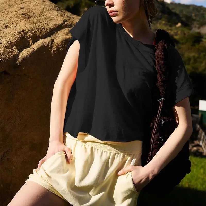 Oversized crop tops for women are extremely versatile. Pair them with yoga pants, leggings, jeans, vests, jumpsuits, or pleated skirts to create a sporty yet fashionable look. This “My Time” tee is a must-have for summer outings and casual street style .