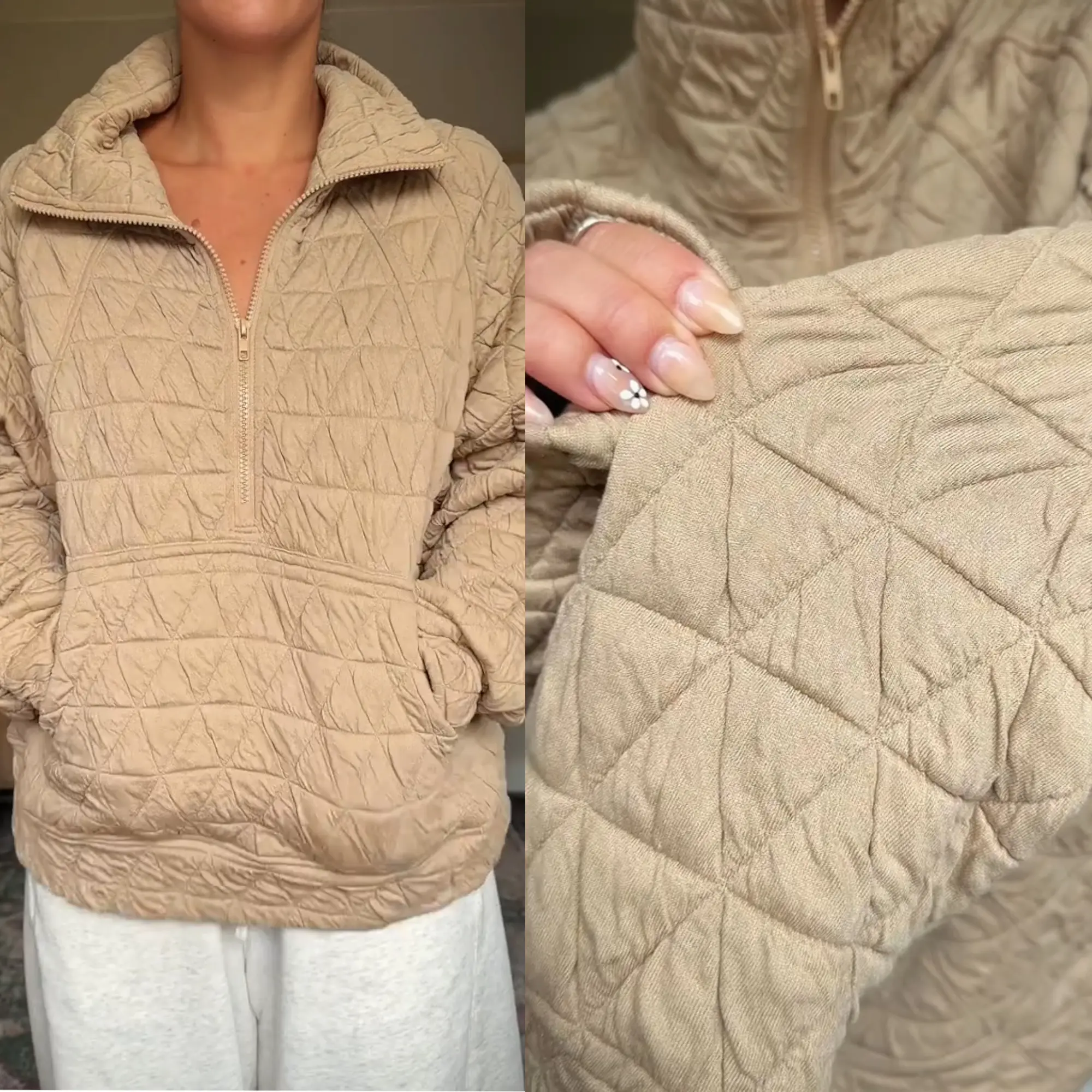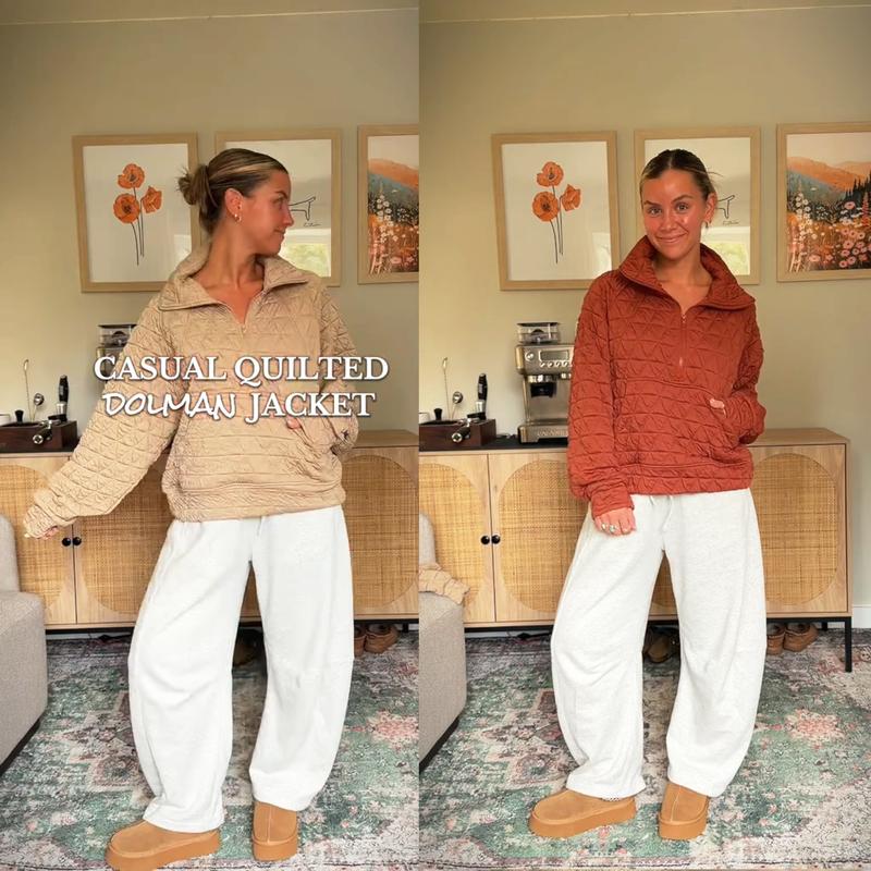 Machine washable on gentle cycle. Tumble dry low or lay flat to dry to maintain quilted texture and shape. Durable construction keeps it soft, cozy, and stylish season after season. A must-have oversized casual top for women’s fall and winter fashion.