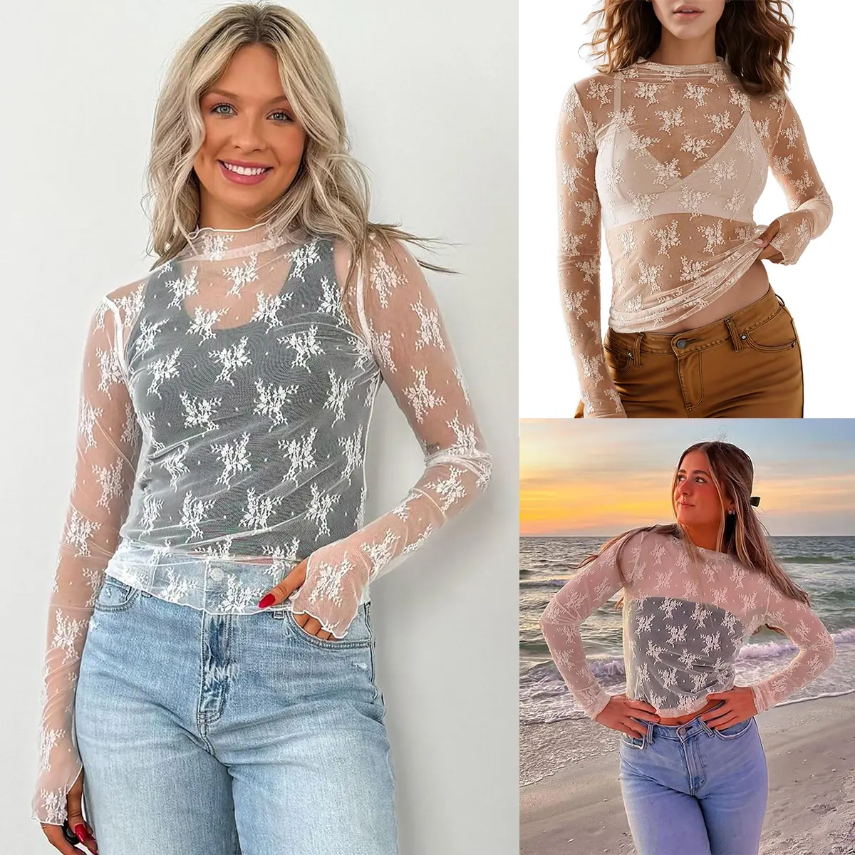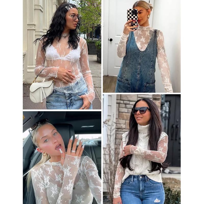 Womens see through tops are cost-effective. Great for wearing as a standout in summer, or layering over bralettes camisoles or under dresses in spring, or pair with vest, sweater in autumn and winter. Lace shirt is perfect with leather skirt, jeans, suit pants,high heels for a chic look
