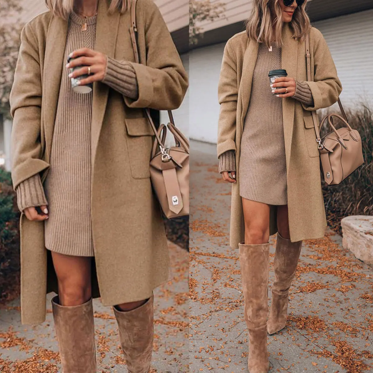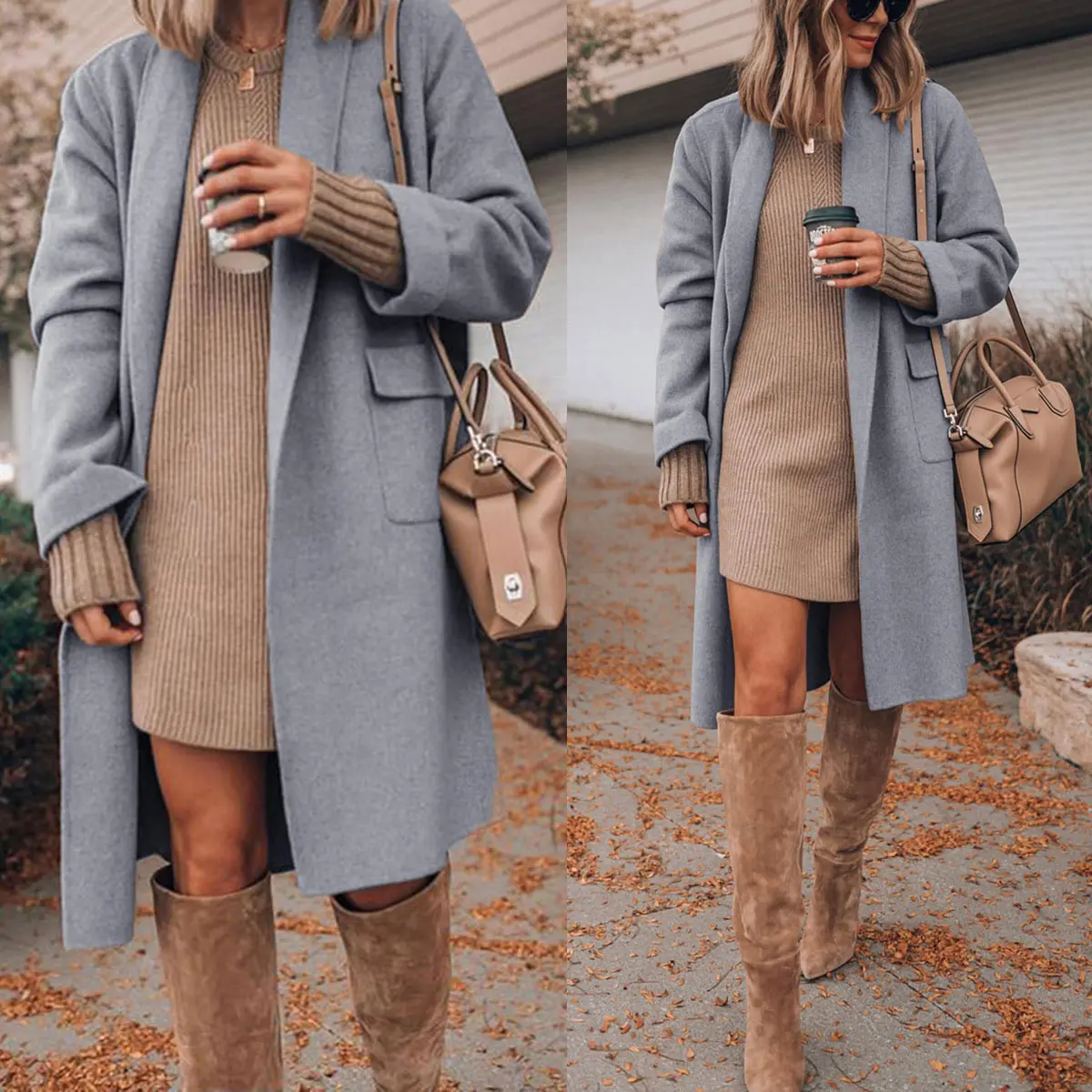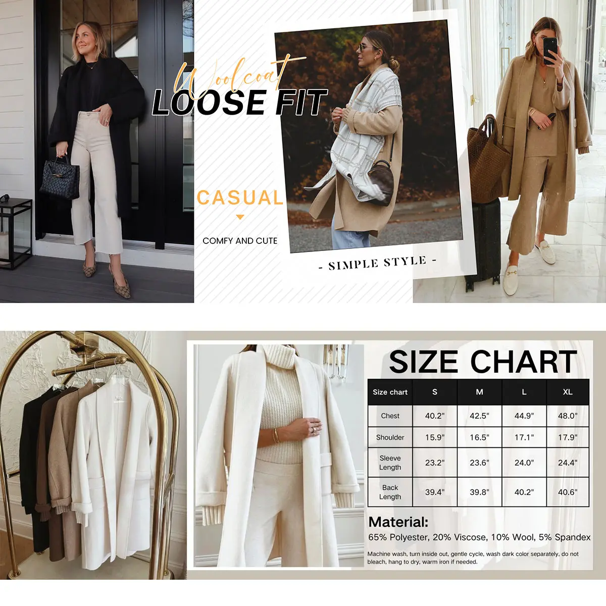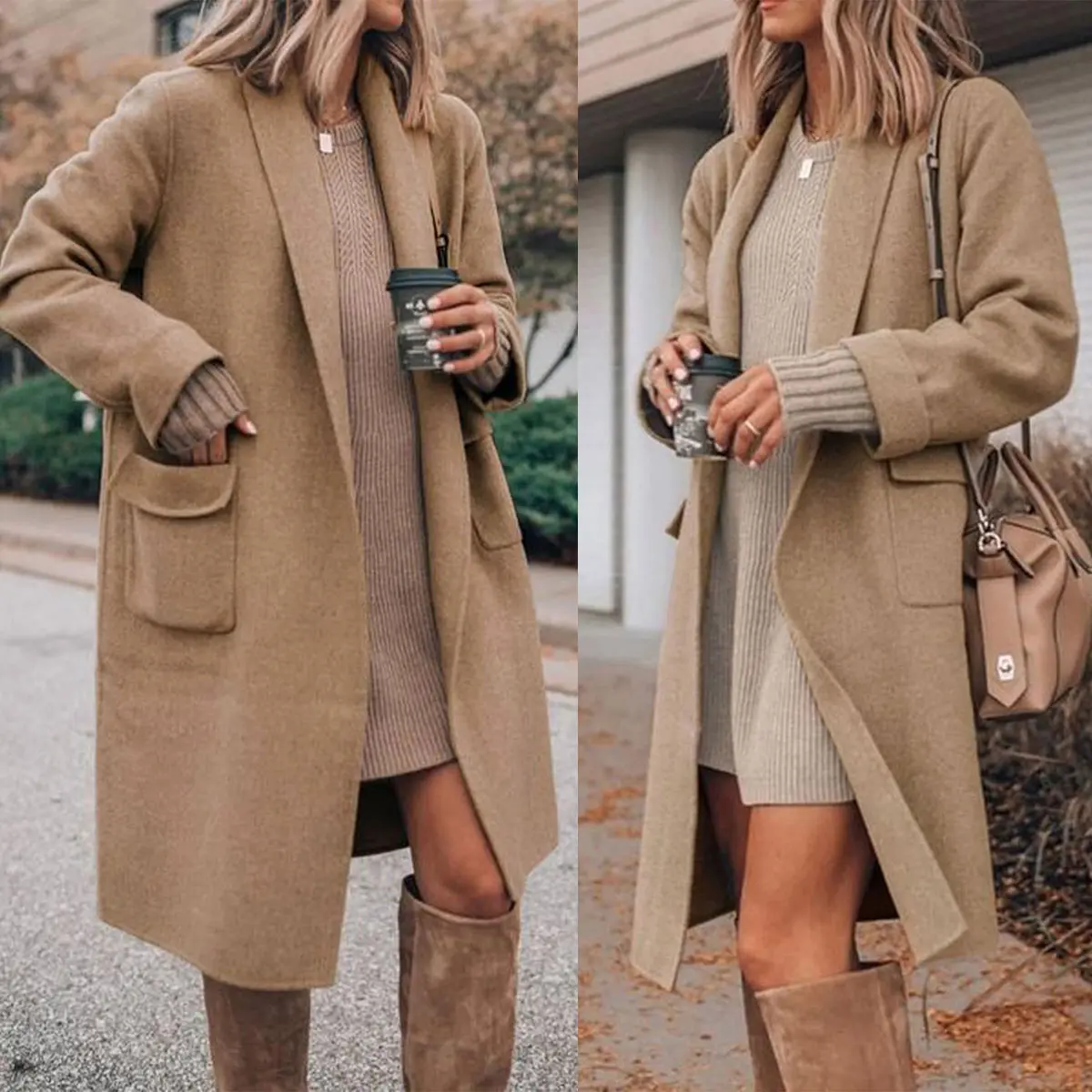 ·Features: Open front design, two flap hand pockets, lapel neckline, cozy fabric, knee length, chunky wool winter fashion coat