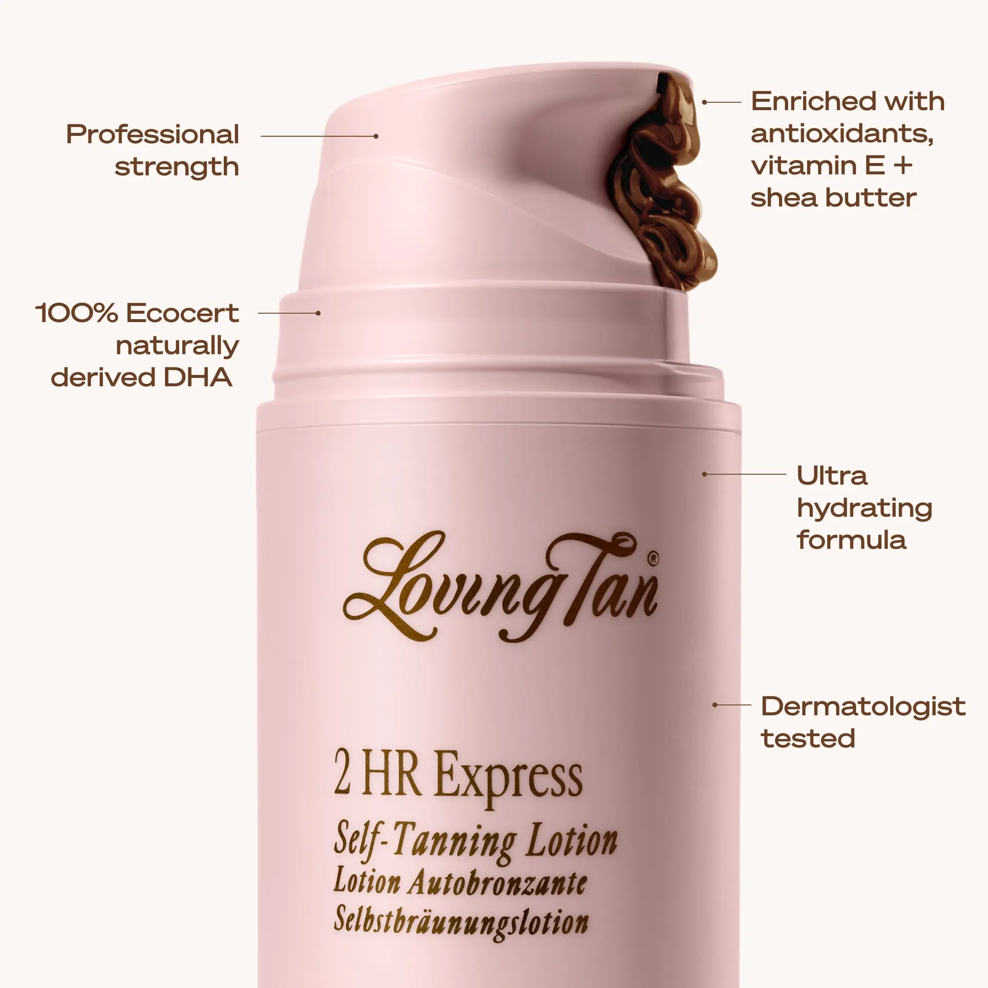| Ingredients | WATER (AQUA/EAU),DIHYDROXYACETONE,CETEARYL ALCOHOL,ETHOXYDIGLYCOL,GLYCERIN,SIMMONDSIA CHINENSIS (JOJOBA) SEED OIL,COCO-CAPRYLATE/CAPRATE,SQUALANE,GLYCERYL STEARATE,SODIUM HYALURONATE,CHAMOMILLA RECUTITA (MATRICARIA) FLOWERS EXTRACT,PANTHENOL,TOCOPHERYL ACETATE,SHOREA ROBUSTA RESIN,RHUS VERNICIFLUA PEEL CERA/ RHUS SUCCEDANEA FRUIT WAX/CERA,CETEARETH-20,HELIANTHUS ANNUUS (SUNFLOWER) SEED CERA/WAX,SORBITAN OLEATE,OLEA EUROPAEA (OLIVE) OIL UNSAPONIFIABLES,HYDROXYETHYL ACRYLATE/SODIUM ACRYLOYLDIMETHYL TAURATE COPOLYMER,FRAGRANCE (PARFUM),ETHYLHEXYLGLYCERIN,SODIUM BENZOATE,PHENOXYETHANOL,SODIUM METABISULFITE,BENZYL BENZOATE,COUMARIN,LIMONENE,FD&C RED NO. 40 (CI 16035),FD&C BLUE NO.1 (CI 42090),FD&C YELLOW NO. 5 (CI 19140). |