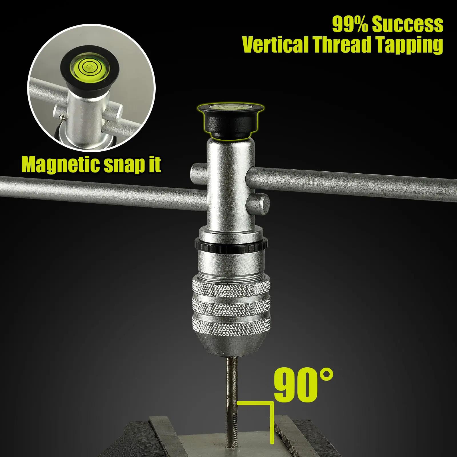 Using the Magnetic Tapping Guide, the tap will find its straightness during rotation.