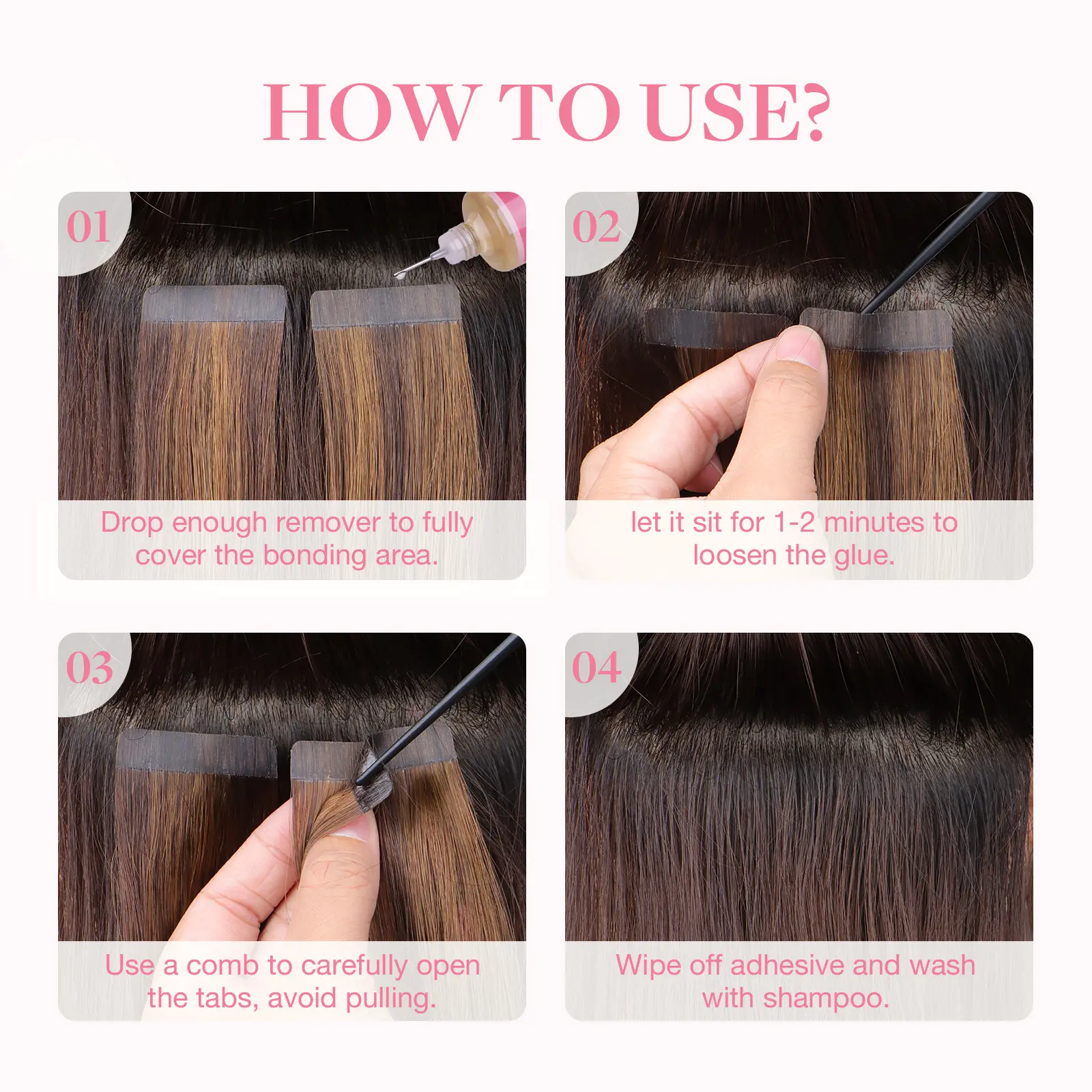 This product is Unbelievable. It has a long thin adapter to squeeze in between your extensions that are taped in. I had my extensions out in 20 minutes no pulling no loss of hair. Highly recommend.