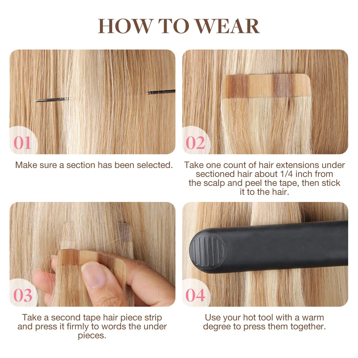 I absolutely am in love with these extensions! They were in a cute packaging, and exactly like pictured. They were easy to install myself for my first time and I needed 4 boxes for my thin shoulder length hair. They crimp, curl and straighten easily and the stay power is incredible! I will be purchasing more colors!