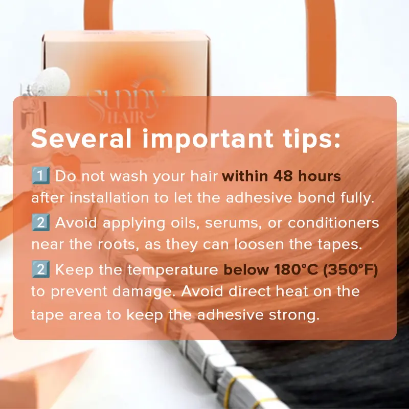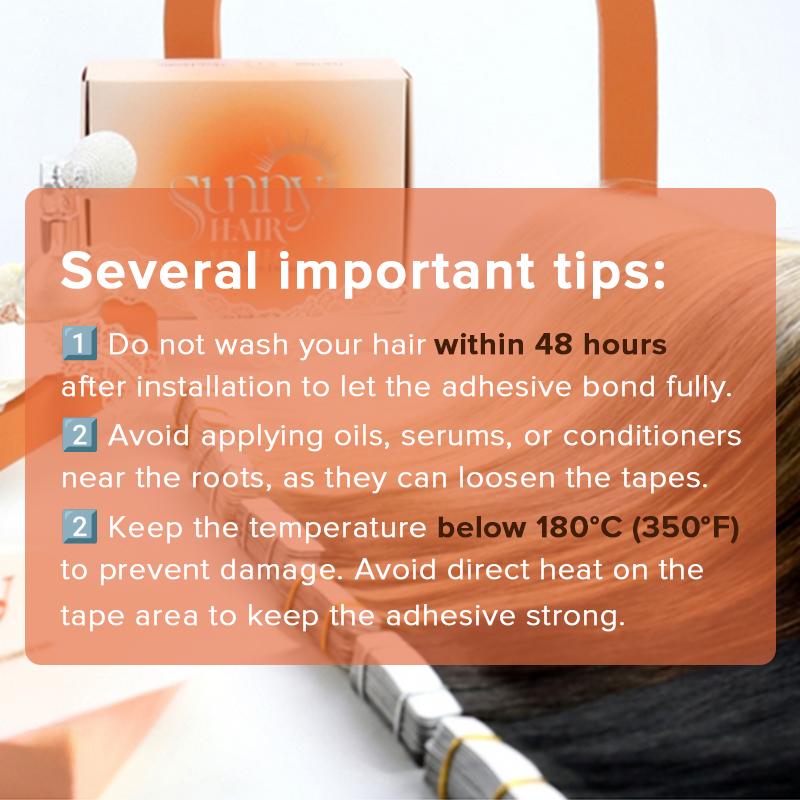 ·Remy Human Hair : Sunny Tape in Human Hair Extensions Balayage Brown are made from 100% remy human hair, which is soft and silky with healthy shine,no tangle and shedding. It can be straightened, curled, washed and dyed to darker color with professional dyeing process. Please notice that the temperature should be under 356℉.