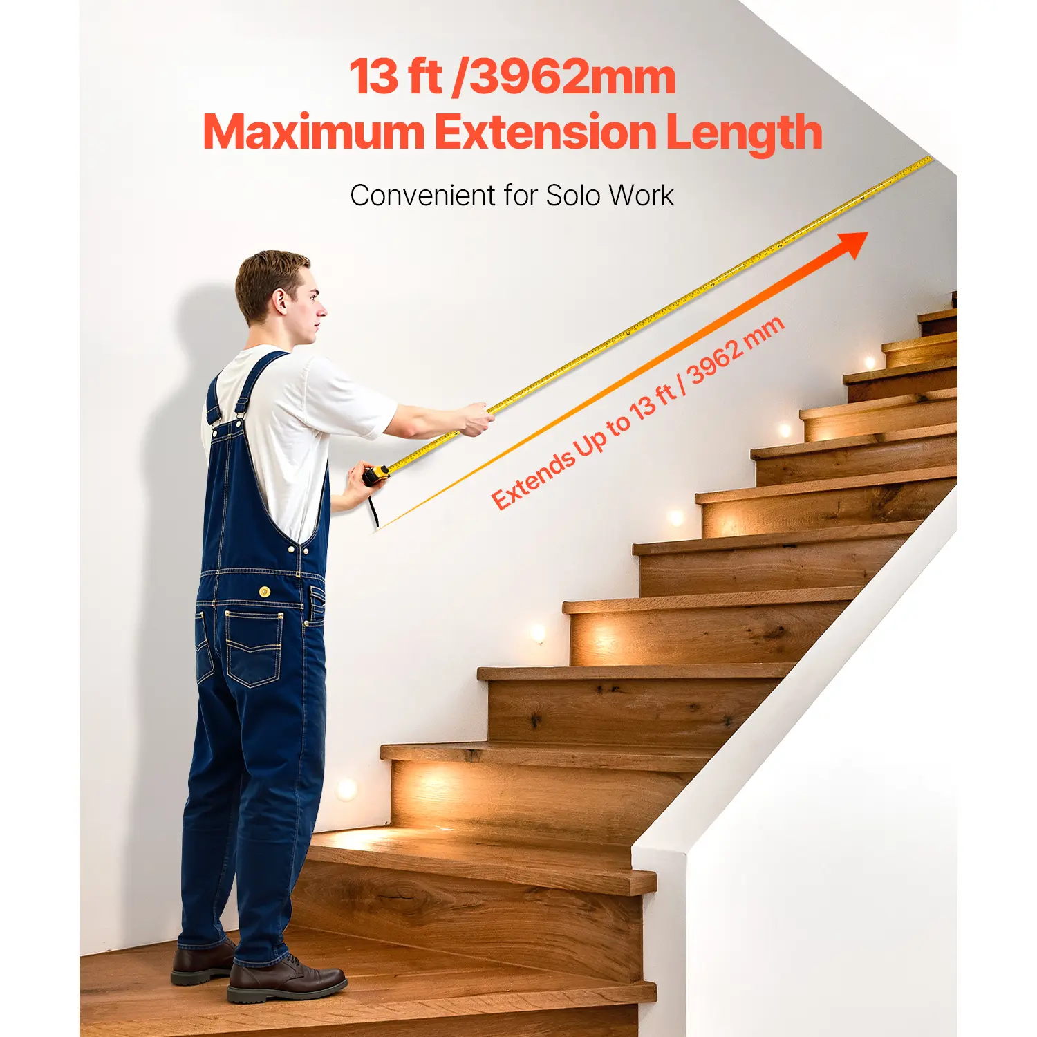 âą 25 ft / 7620 mm Extra Long Range: With a 25 ft / 7620 mm measuring range, this tape measurer is ideal for home renovations, outdoor measurements, and professional surveys. It covers multiple measurement needs, reducing the need for frequent tool changes and improving work efficiency