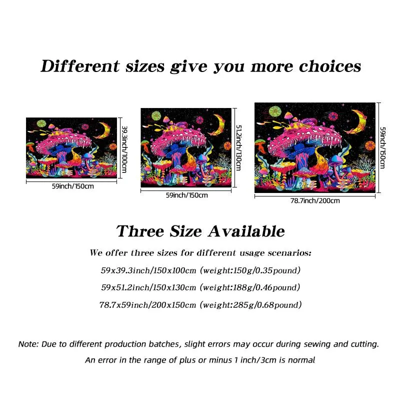 I love it, it makes me feel peaceful. I love the colors and every LED color makes the tapestry change the colors of the mushrooms 🍄:).