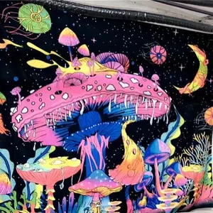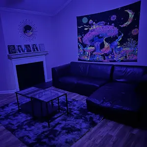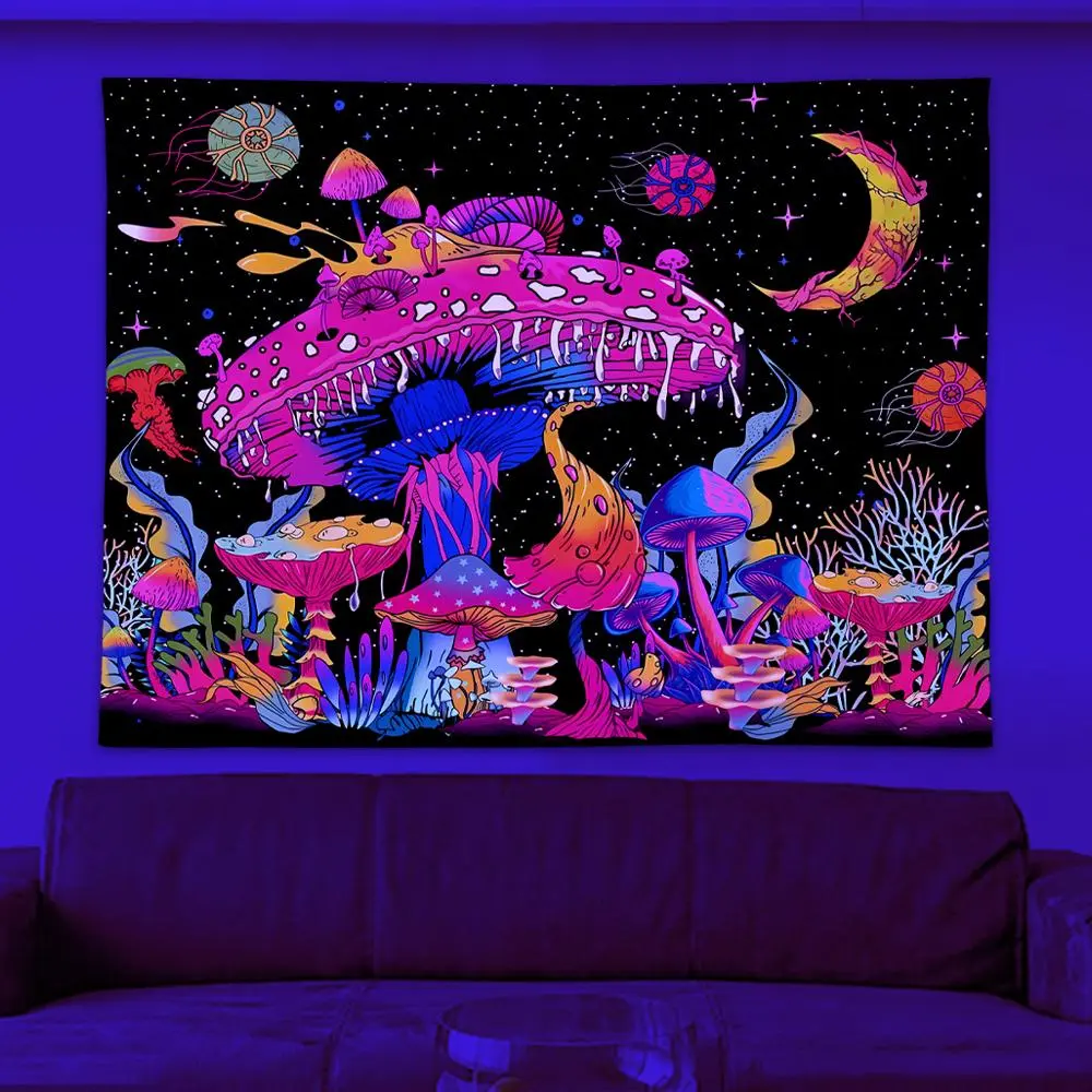 Fluorescent Mushroom Print Tapestry, Durable Decorative Tapestry, UV Black Light Home Decor Posters Tapestry, Glow In The Dark Wall Hanging for Living Room, Bedroom Accessories, Summer Gift