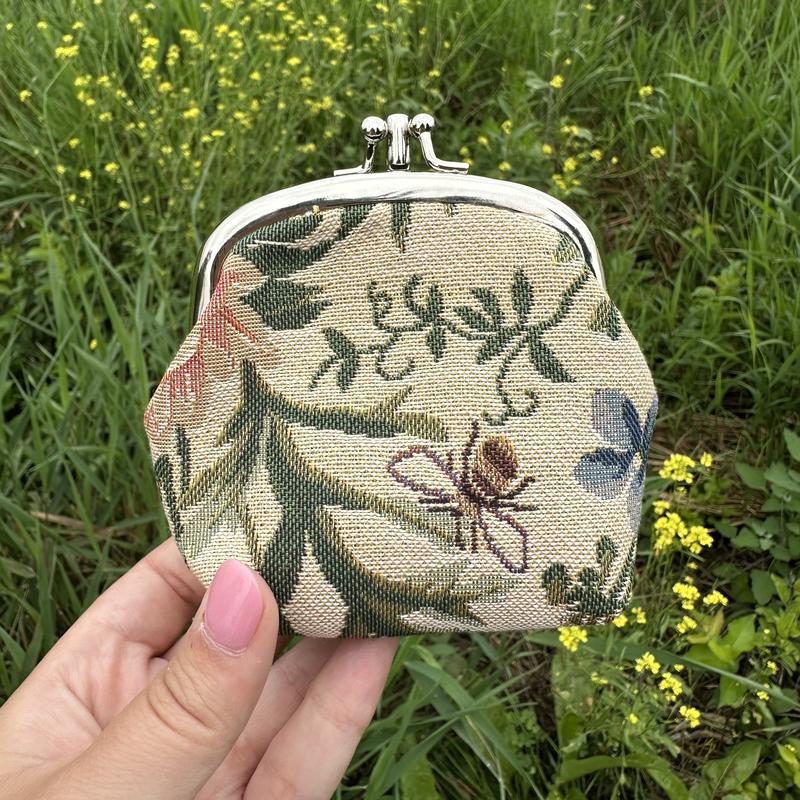 Start your day with the charm and tranquility of this Good Morning themed Tapestry Coin Purse Wallet. Featuring a beautifully woven scene the captures the peaceful morning with flowers and butterflies. This compact purse is both practical and poetic. Crafted from durable tapestry fabric with a inner lining and a vintage-inspired kiss-lock clasp, it is perfect for carrying coins, small bills, or cherished keepsakes. It also makes a lovely gift for those who appreciate beauty in the everyday. Measures 4 x 1.75 x 3.75 inches.