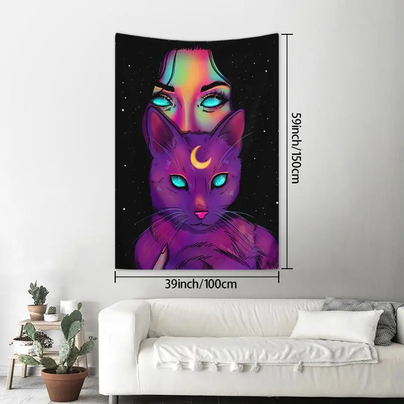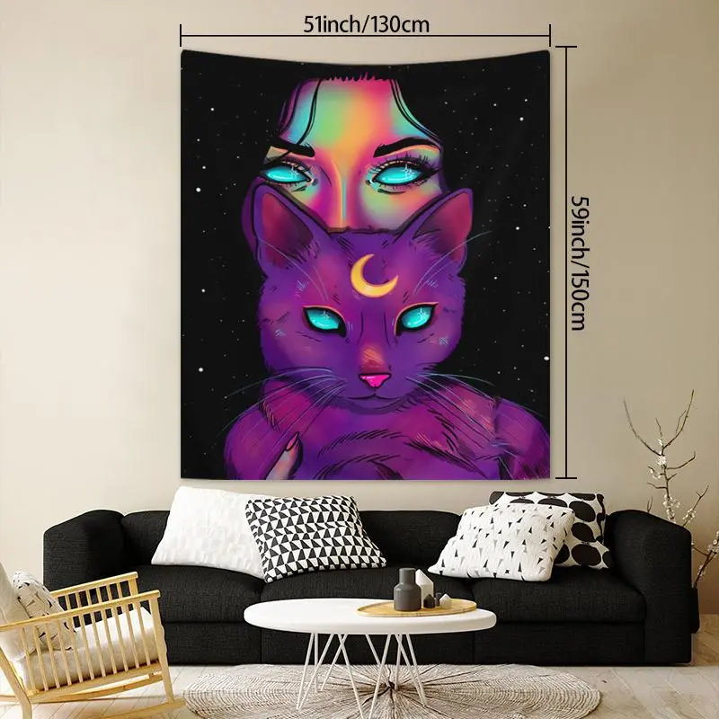 1 Count Fashionable Woman & Cat Pattern Tapestry, Wall Hanging Decor for Living Room Bedroom, Home Decor Tapestry