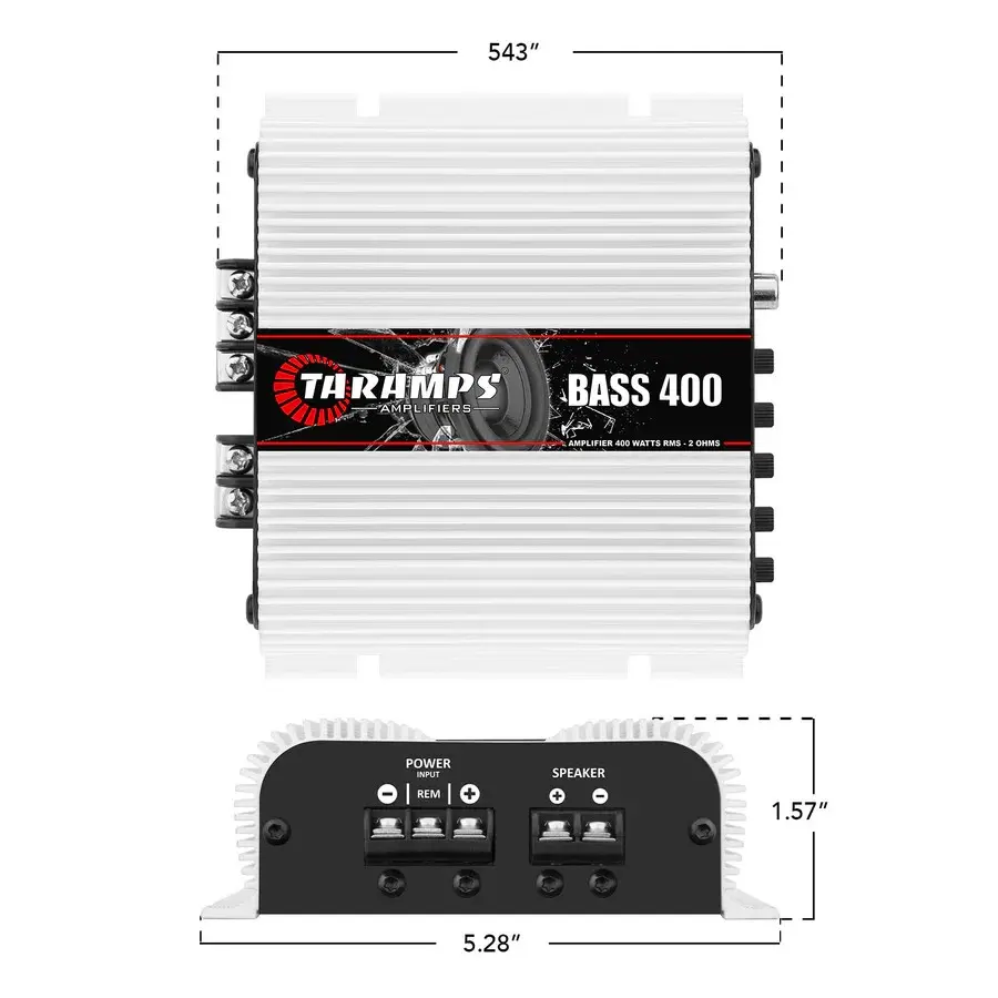 Taramps Bass 400 2 Ohms Monoblock Amplifier 400 Watts Rms 1 Channel 14.4VDC Out Power Full Range, Great for Sub/Bass - Rca/High Level Input, Car Audio