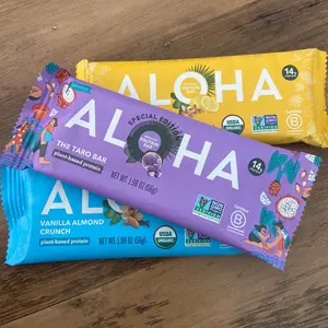 Ingredients: Protein Blend* (Brown Rice Protein*, Pumpkin Seed Protein*), Tapioca Fiber*, Sunflower Seed Butter* (Roasted Sunflower Seeds*, High Oleic Sunflower Oil*), Tapioca Syrup*, Vegetable Glycerin*, Macadamia Nuts*, Coconut Flakes*, Purple Sweet Potato Powder, Brown Sugar*, Poi Powder (Taro Root), Natural Flavor*, Sea Salt, Sunflower Lecithin*, PONOVAĀ® Oil (Edible Pongamia Oil)*
