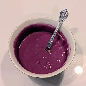 I tried this flavor in the sample pack, and it was one of the two that I liked enough to purchase the full size bag. It blends well, isn't too sweet, and can't forget to mention the pretty purple color!