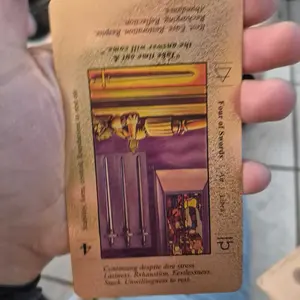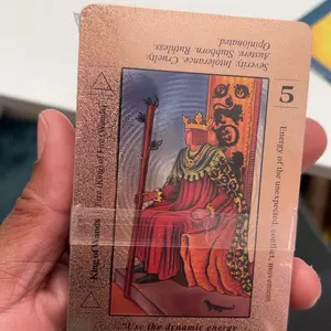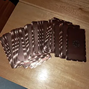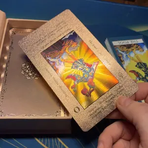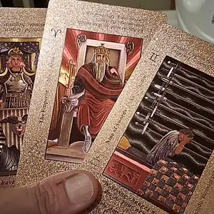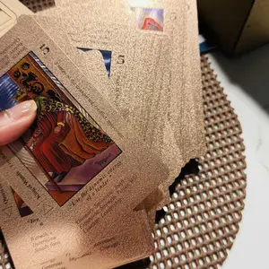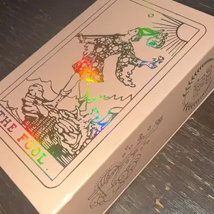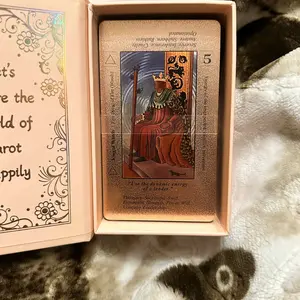 These cards are amazing! I totally love them! Rose gold is one of my favorite colors so I had to have them. They are beautifully holographic. As a beginner to tarot I love them because the words are on the cards making it easy to learn. Very good quality cards and the box is beautiful as well.