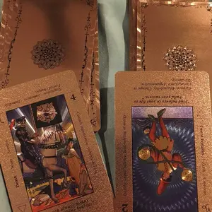 Ngl, this tarot deck is actually really cool. I rarely leave reviews but this purchase was worth it & I am so in love with the design and style. It's water proof, easy to shuffle. A little more slippery than I thought but it's also water proof and perfect for easy comprehension! ☾