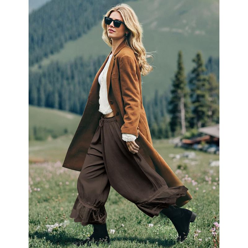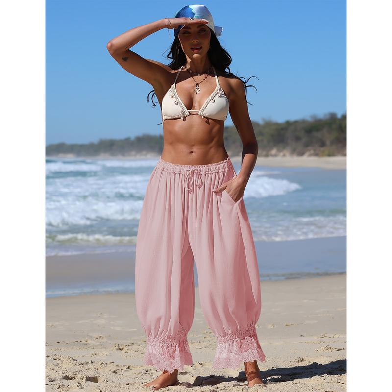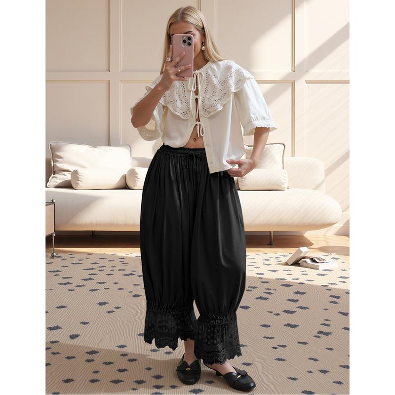 Cropped Lace Pants for Women Ruffle Long Bloomers Flare Lace Trim Pantaloons