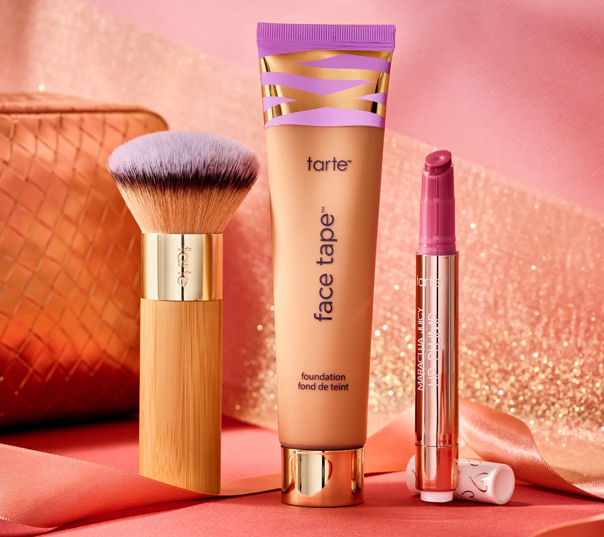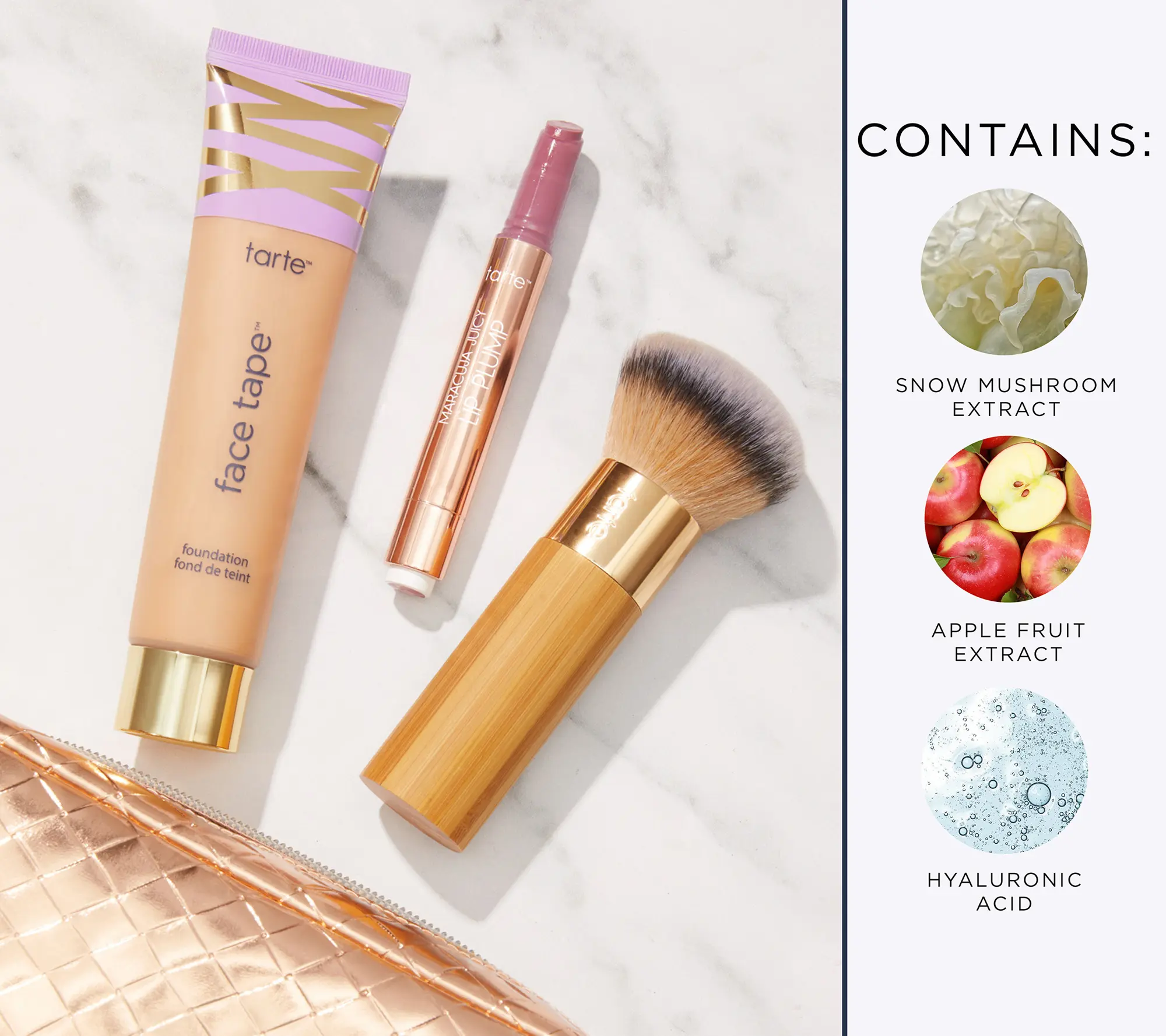 | Ingredients | A661791 super-sized face tape foundation 3pc kit & bag 8B porcelain beige,12N fair neutral,12S fair sand,14H fair honey,16N fair light neutral,22H light honey,29N light medium neutral,37N medium tan neutral,37G medium tan golden,38N medium tan neutral,42G tan golden,44H tan honey,45H tan honey,59S rich sand Ingredients: Water/Aqua/Eau,cyclopentasiloxane,phenyl trimethicone,methyl methacrylate crosspolymer,cyclohexasiloxane,butylene glycol,caprylyl methicone,glycerin,PEG-10 dimethicone,trimethylsiloxysilicate,sorbitan isostearate,sodium chloride,disteardimonium hectorite,cetyl PEG/PPG-10/1 dimethicone,aluminum hydroxide,triethyl citrate,triethoxycaprylylsilane,phenoxyethanol,dimethicone crosspolymer,fragrance/parfum,ethylhexylglycerin,disodium EDTA,benzyl salicylate,hexyl cinnamal,limonene,hydroxycitronellal,geraniol,amyl cinnamal,linalool,pyrus malus (apple) fruit extract,1,2-hexanediol,tremella fuciformis (mushroom) extract,hyaluronic acid,hydrolyzed hyaluronic acid,sodium hyaluronate,pentaerythrityl tetra-di-t-butyl hydroxyhydrocinnamate. (+/-): Titanium Dioxide (CI 77891),iron oxides (CI 77491,CI 77492,CI 77499). 8S porcelain sand,12B fair beige,15S fair light sand,18B fair light beige,18H fair light honey,20B light beige,20S light sand,22N light neutral,22B light beige,27H light medium honey,27S light medium sand,27B light medium beige,34S medium sand,35B medium beige,35H medium honey,36S medium tan sand,47H tan deep honey,47N tan deep neutral,49G tan deep golden,51N deep neutral,53N deep neutral,53S deep sand,53H deep honey,53G deep golden,57N rich neutral,57S rich sand,57G rich golden,58H rich honey,60N mahogany,60G mahogany golden,61H espresso,Ingredients: Water/Aqua/Eau,sodium |