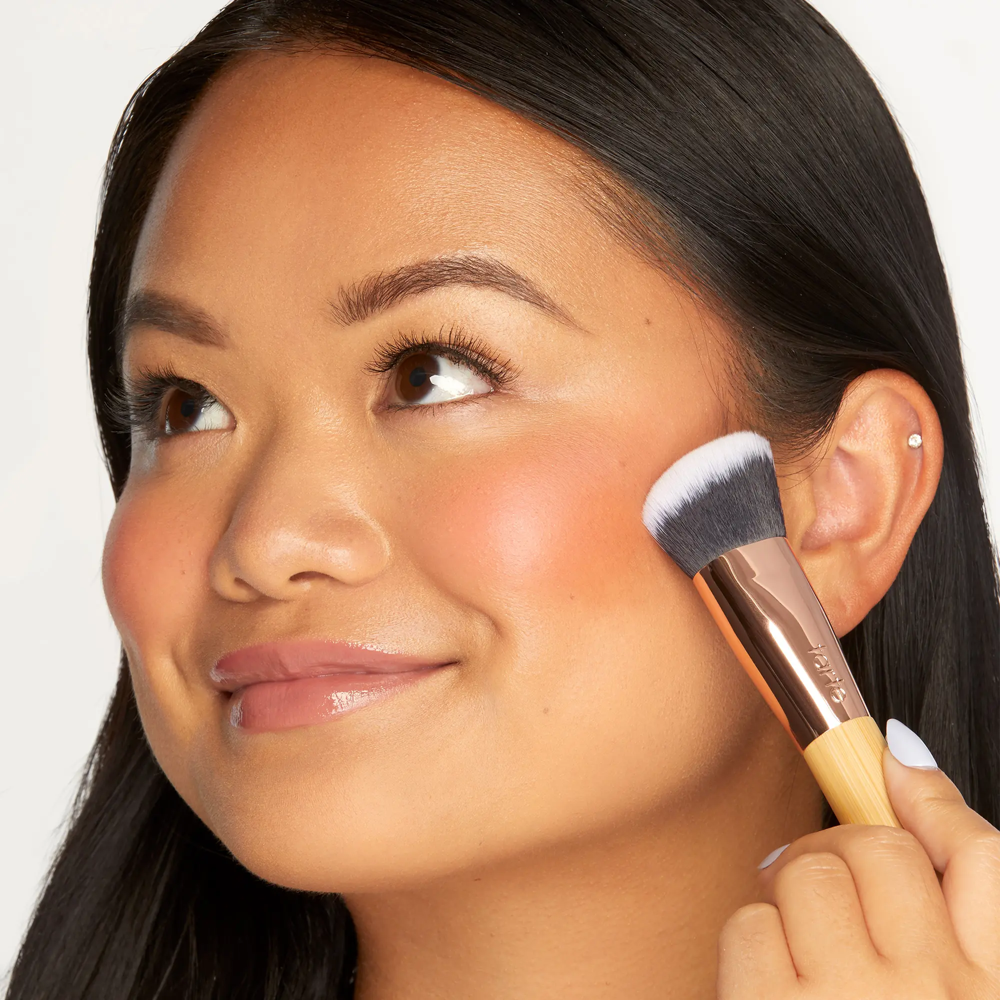 This brush blends liquid & cream blush into skin for a juicy, natural-looking flush.