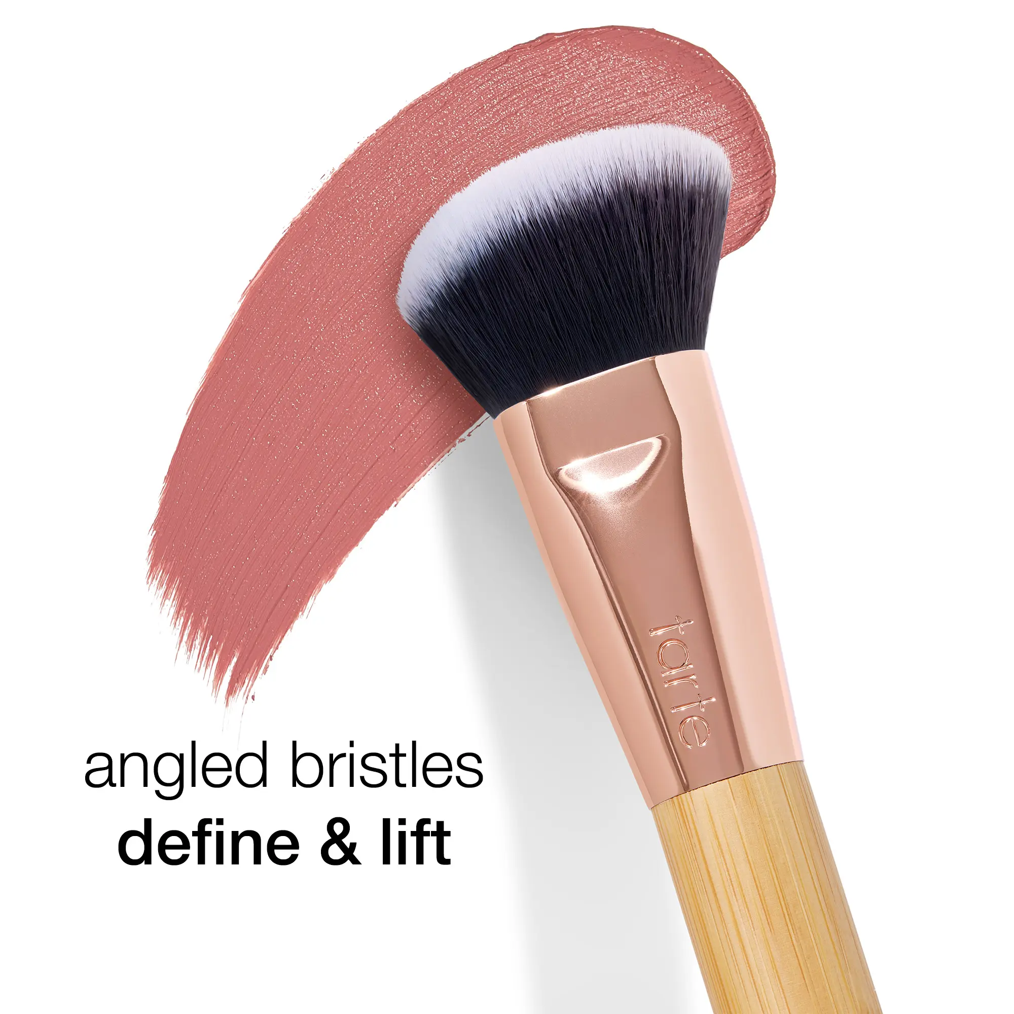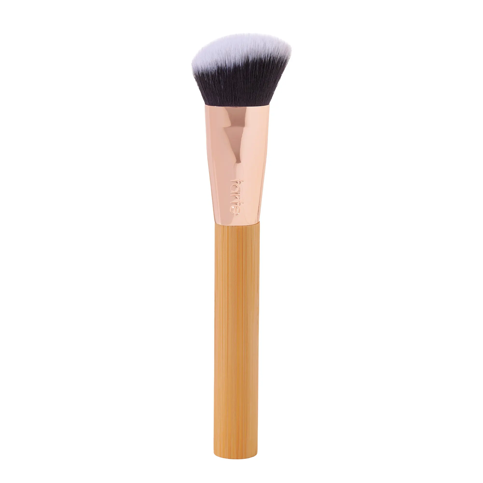 rose-gold accented brush with dense bristles blends your fave liquid & cream blushes seamlessly angled shape for precision vegan & cruelty-free