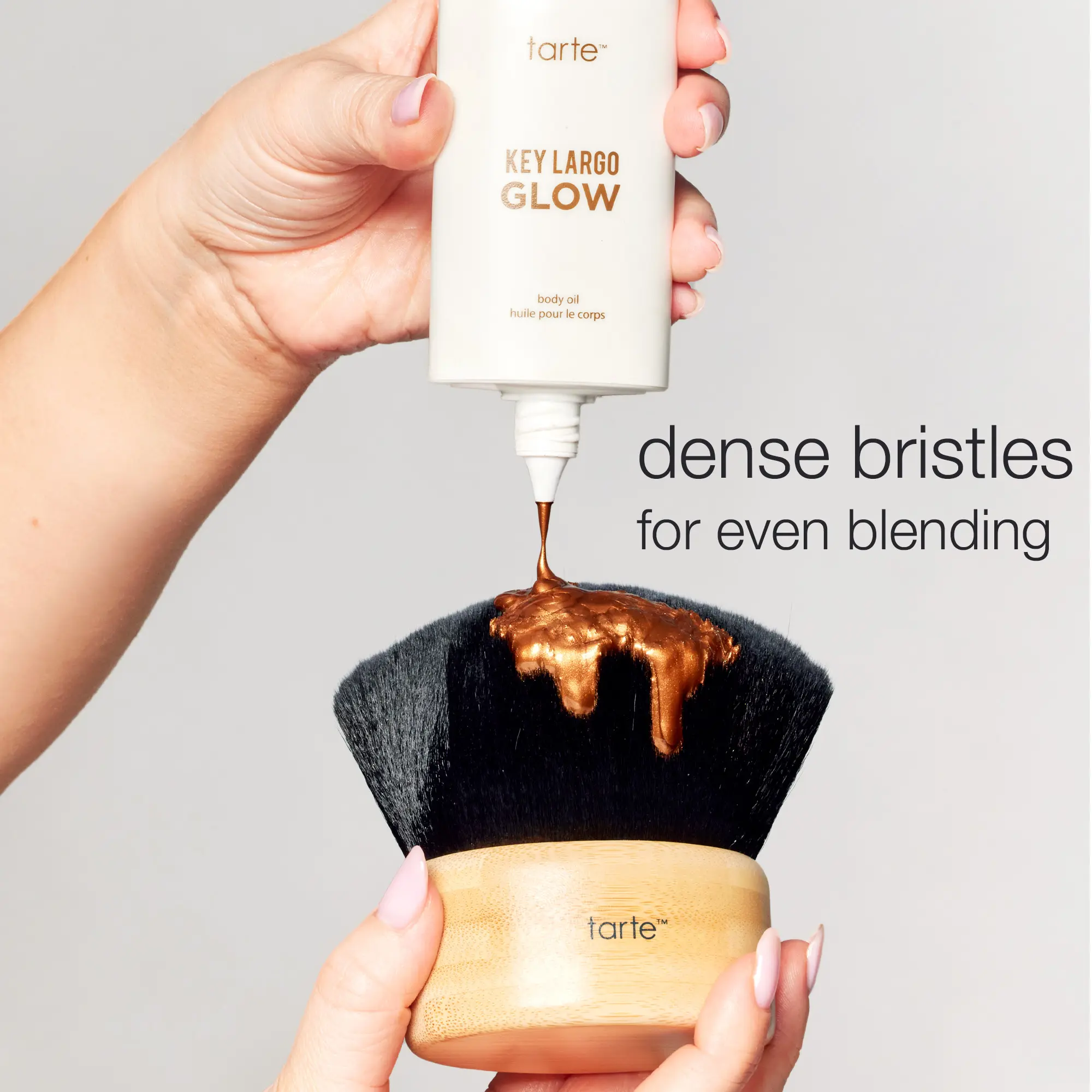 Cover more in less time with this fluffy kabuki body brush! It buffs in bronzing oil effortlessly for a quick head-to-toe glow.
