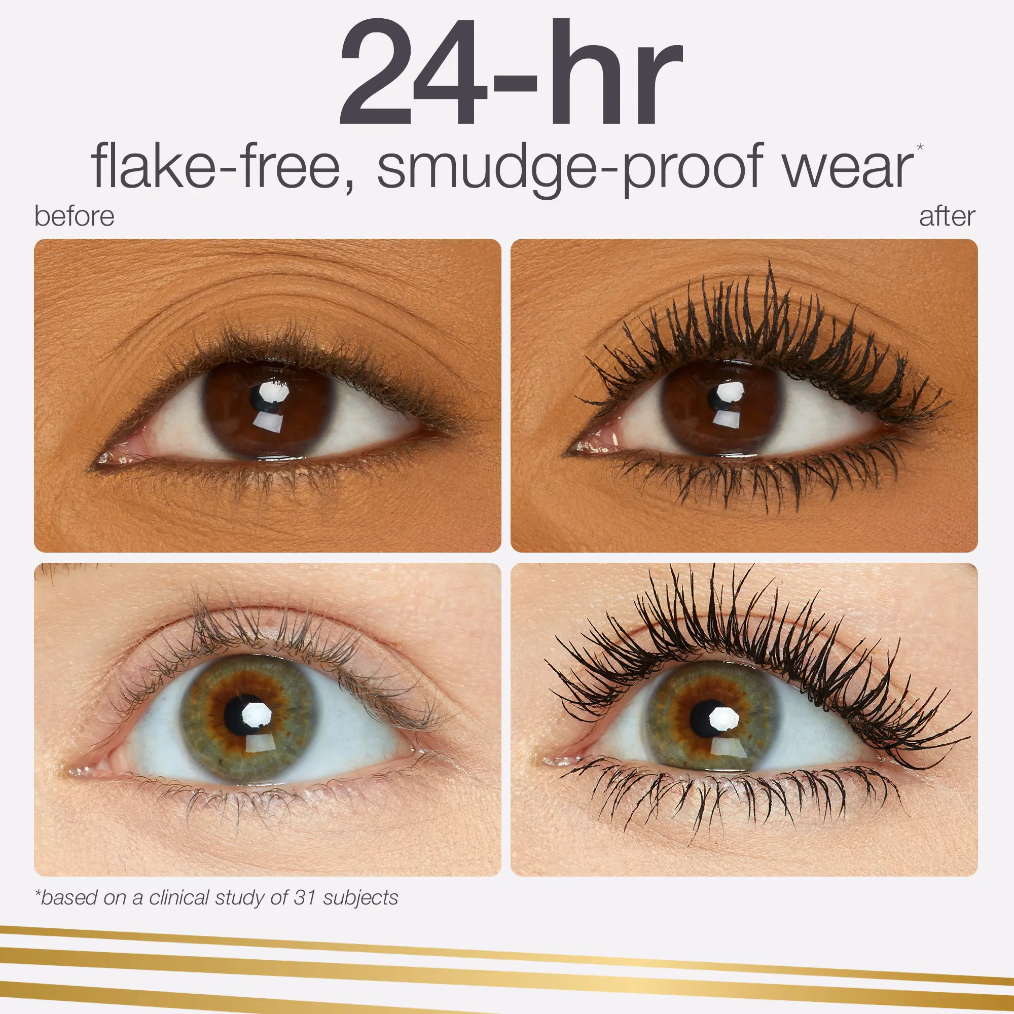 ·24-hr flake-free, smudge-proof lashes that last all day