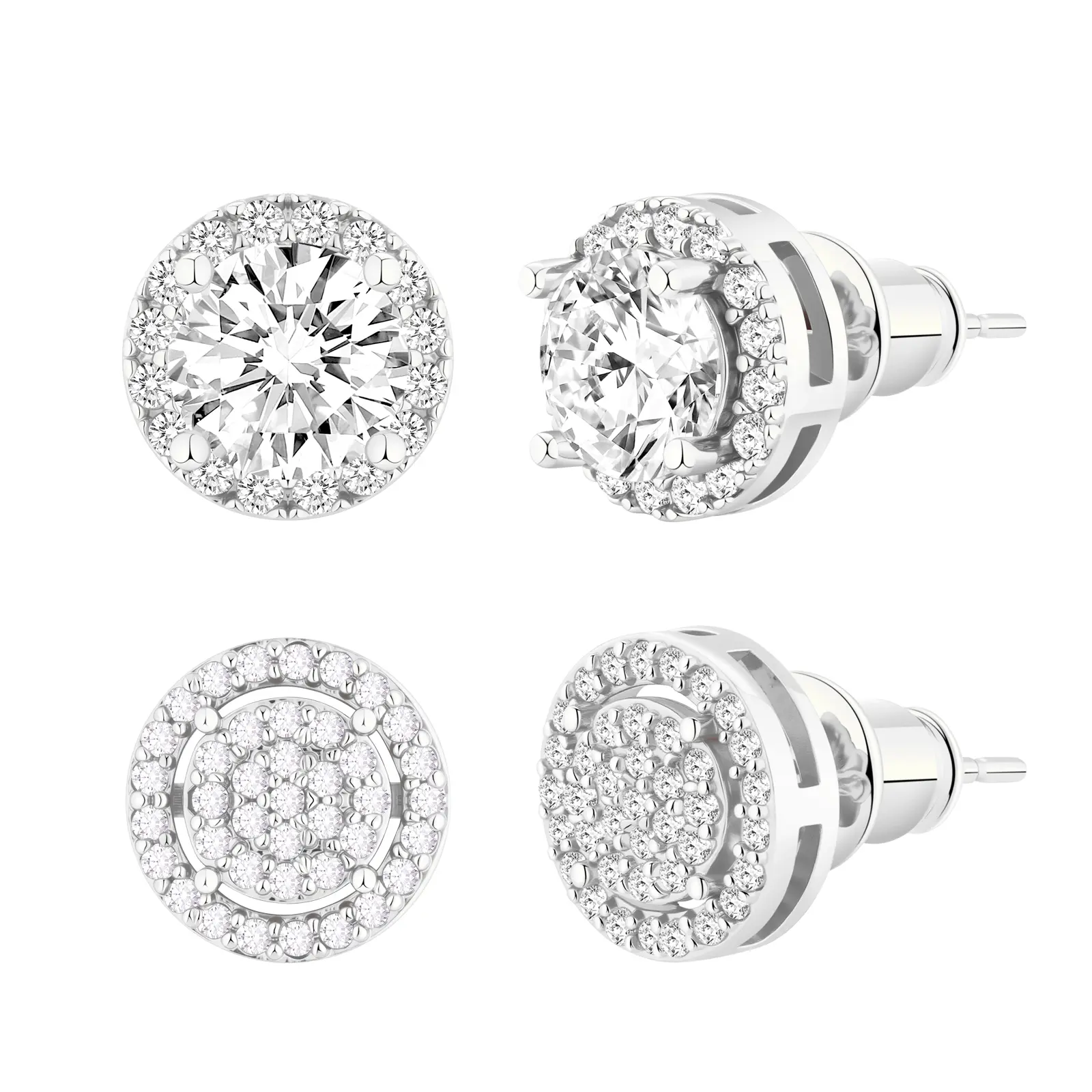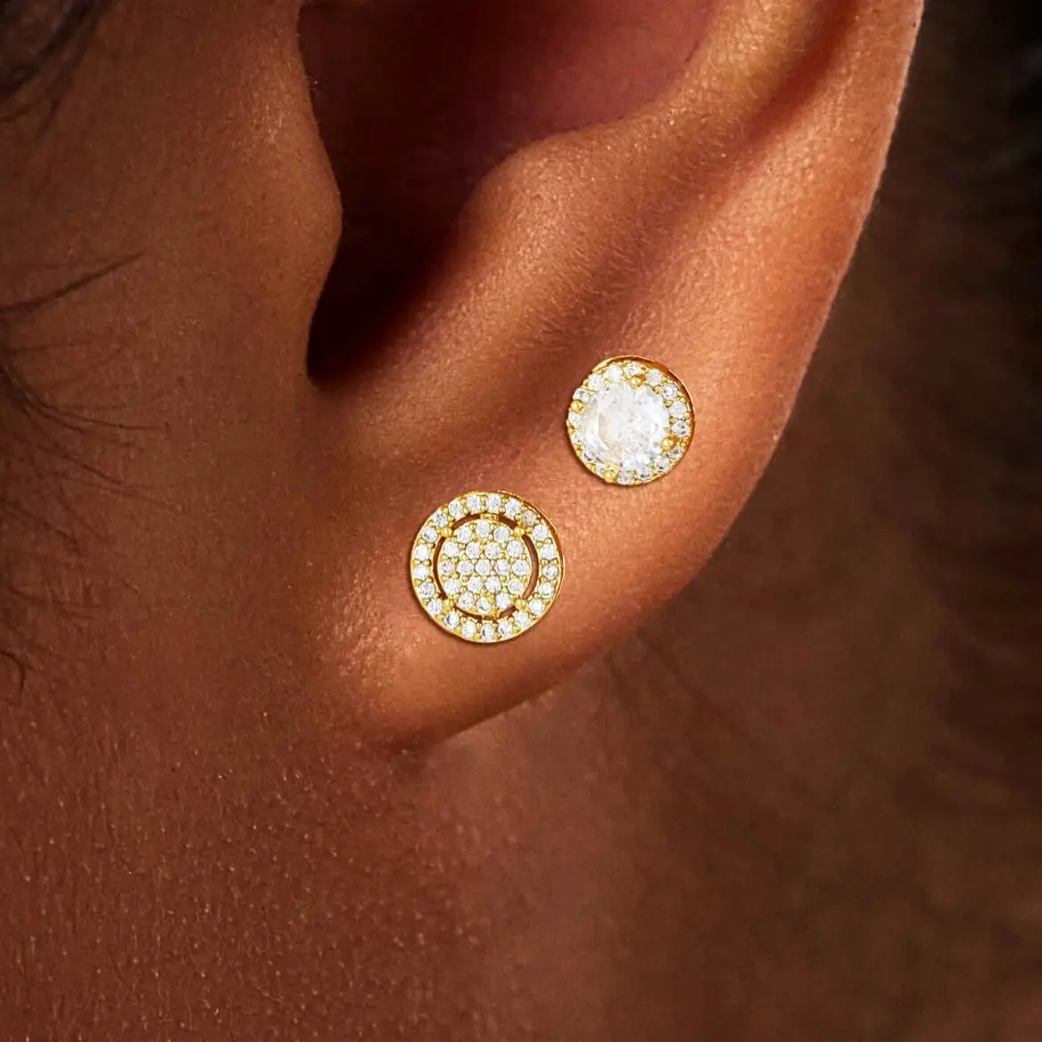 Elevate your jewelry collection with these stunning stud earrings! Meticulously designed, they feature a central sparkling stone encircled by a halo of smaller gems, creating a dazzling effect that's sure to turn heads.
