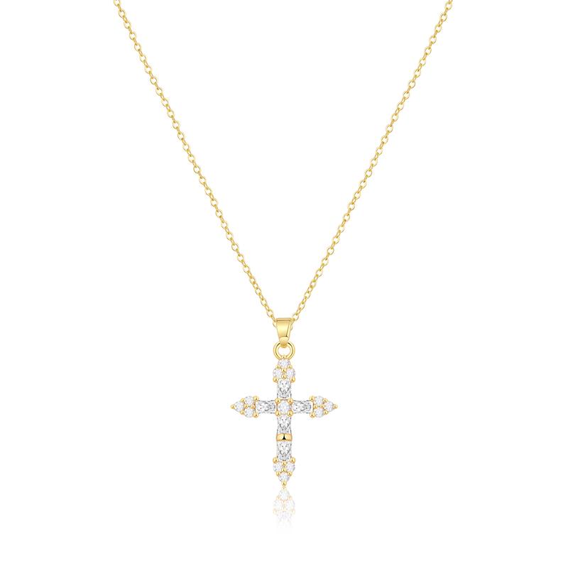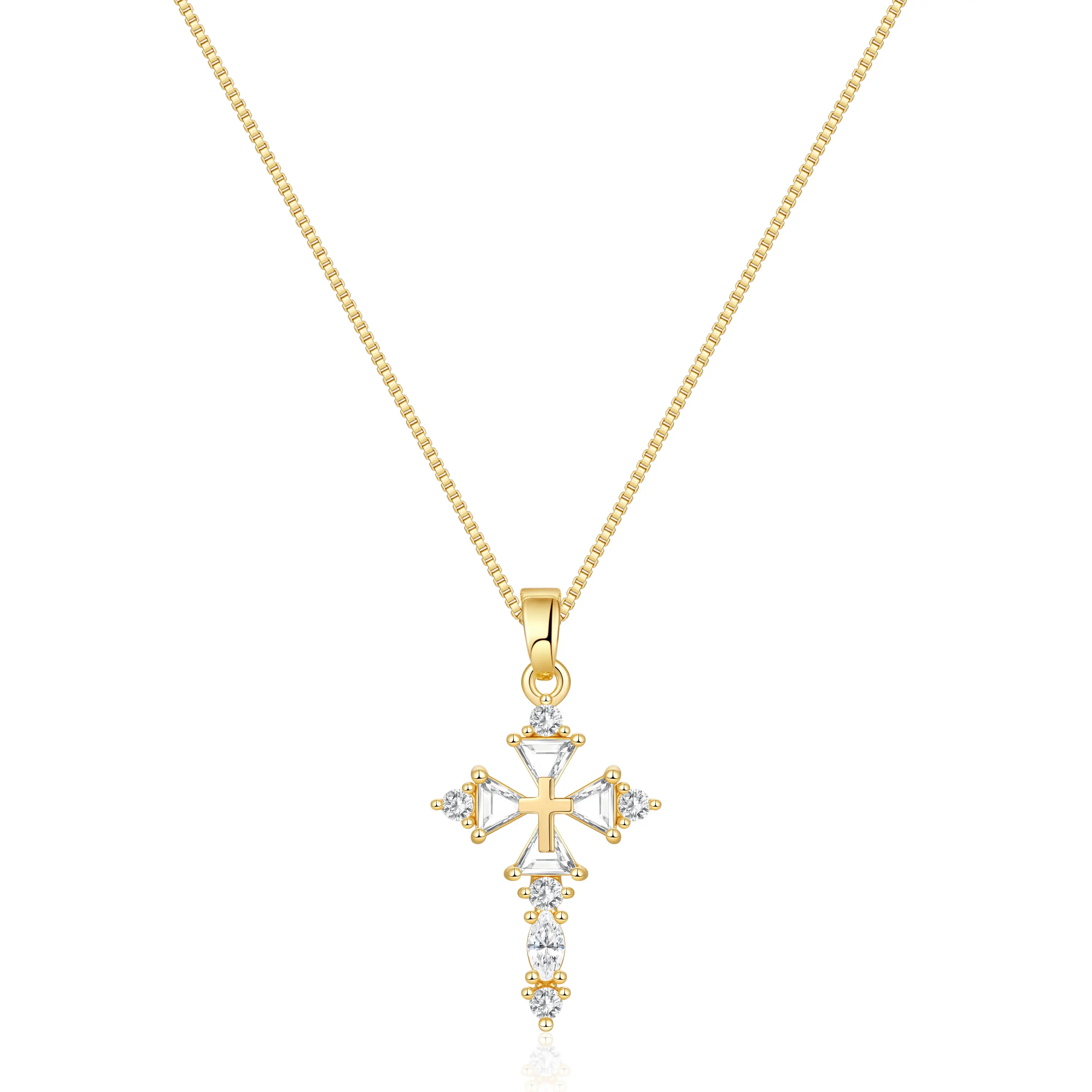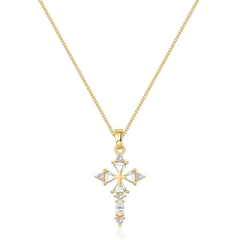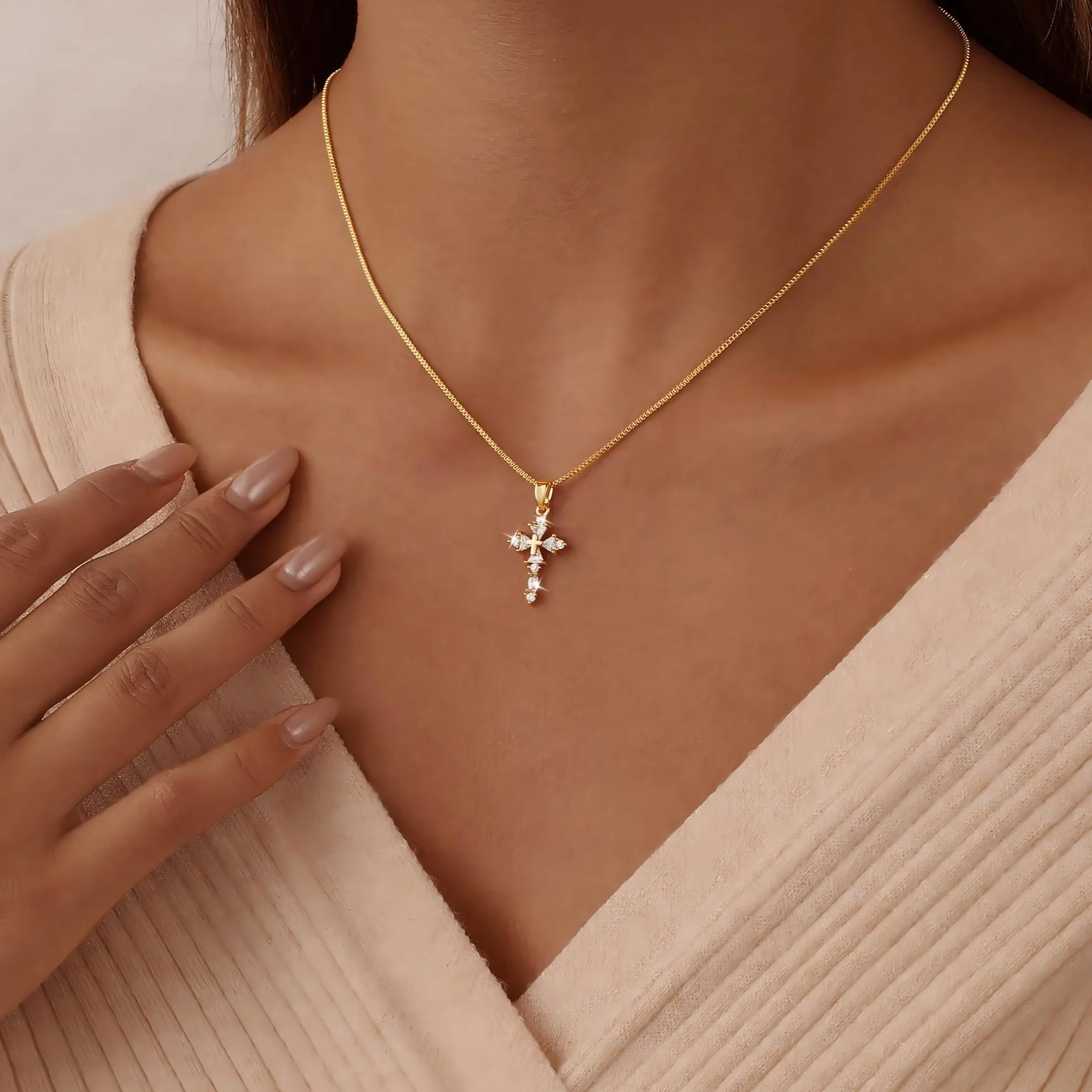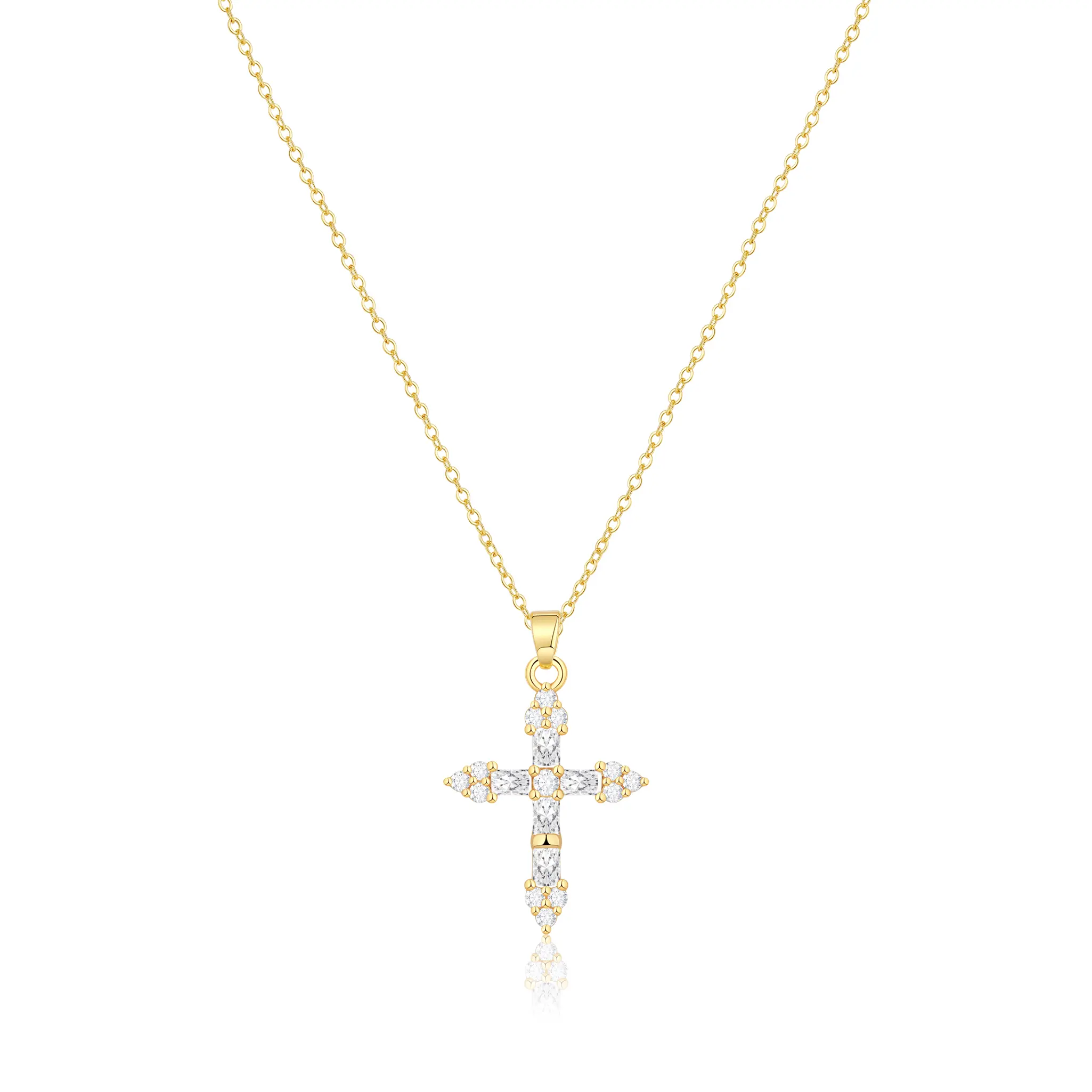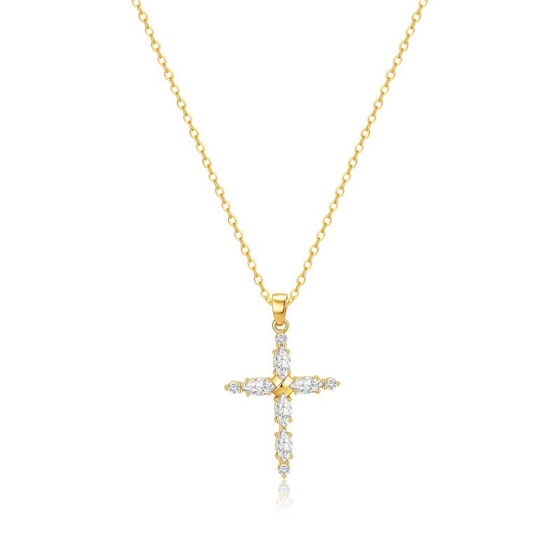 ·Iconic Cross Pendant: 14K gold-plated cross embellished with brilliant-cut cubic zirconia (CZ) stones