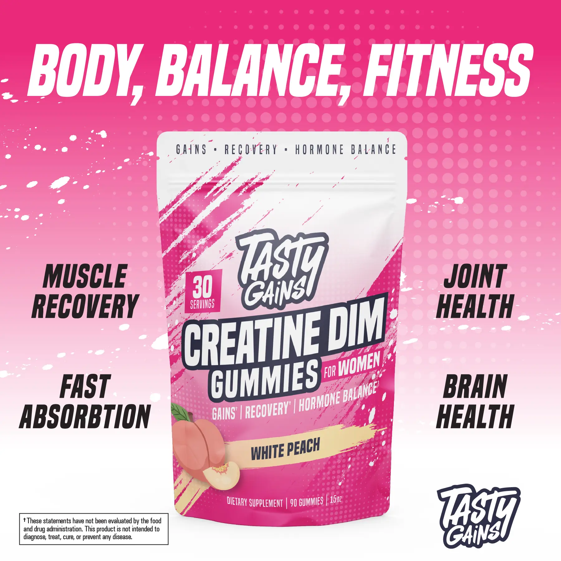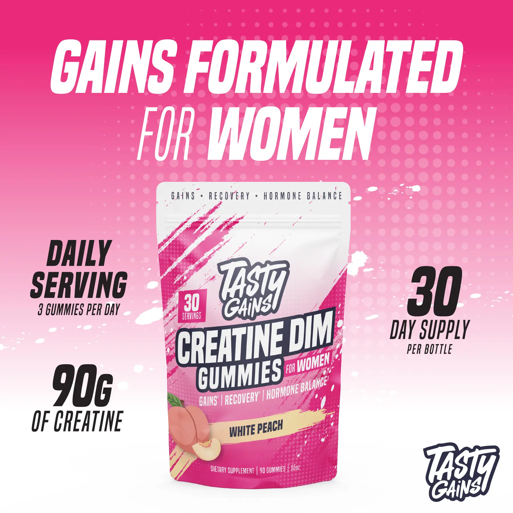 Tasty Gains Creatine DIM Gummies For Women (Gains, Recovery, Hormone Balance)