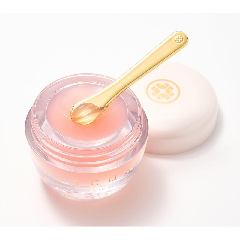 Kissu: Using the gold spoon, scoop up a small amount of the mask and apply it to the lips. Purse lips to smooth and distribute evenly throughout.