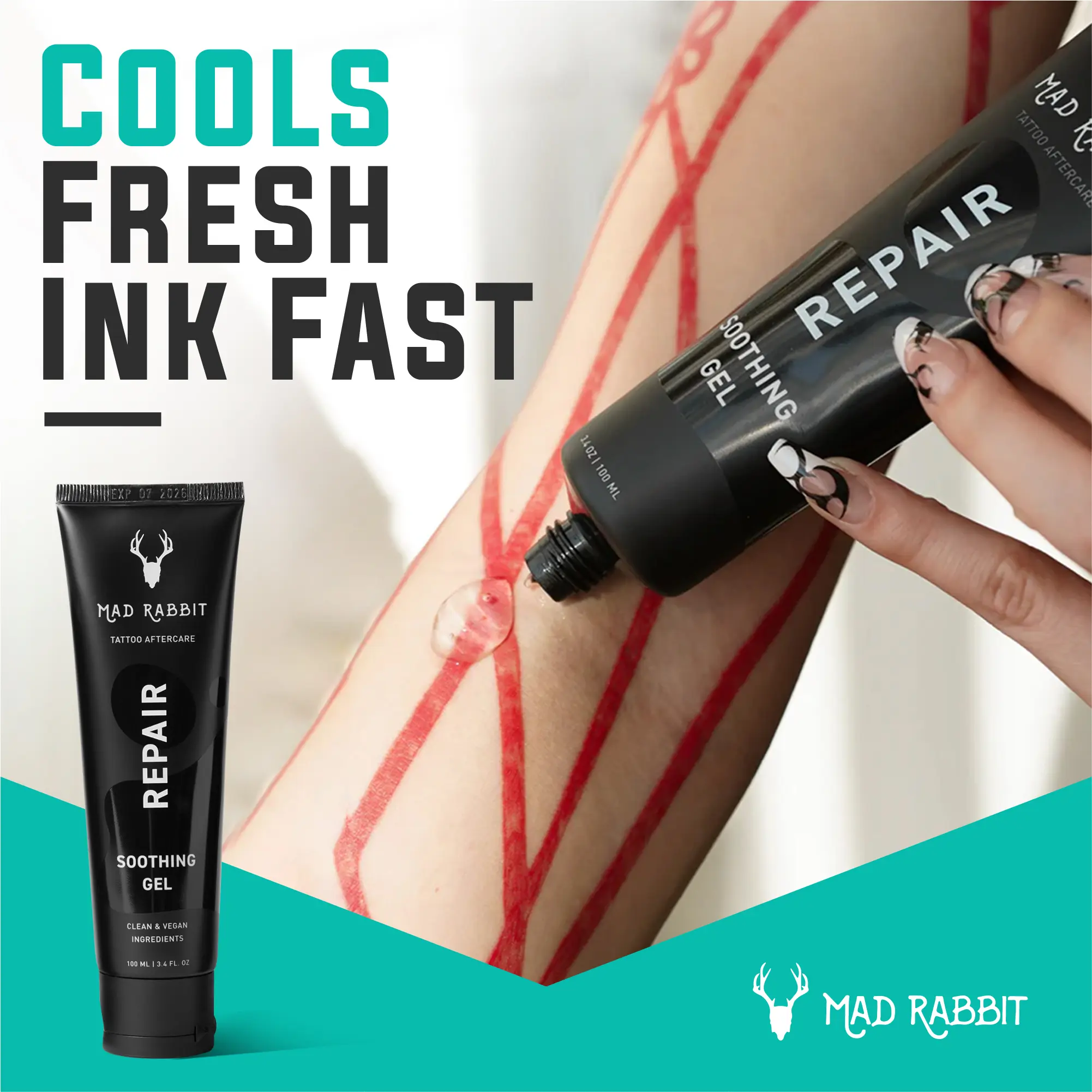 For immediate results after getting new ink and throughout the healing process Mad Rabbit’s Soothing Gel provided phenomenal results.