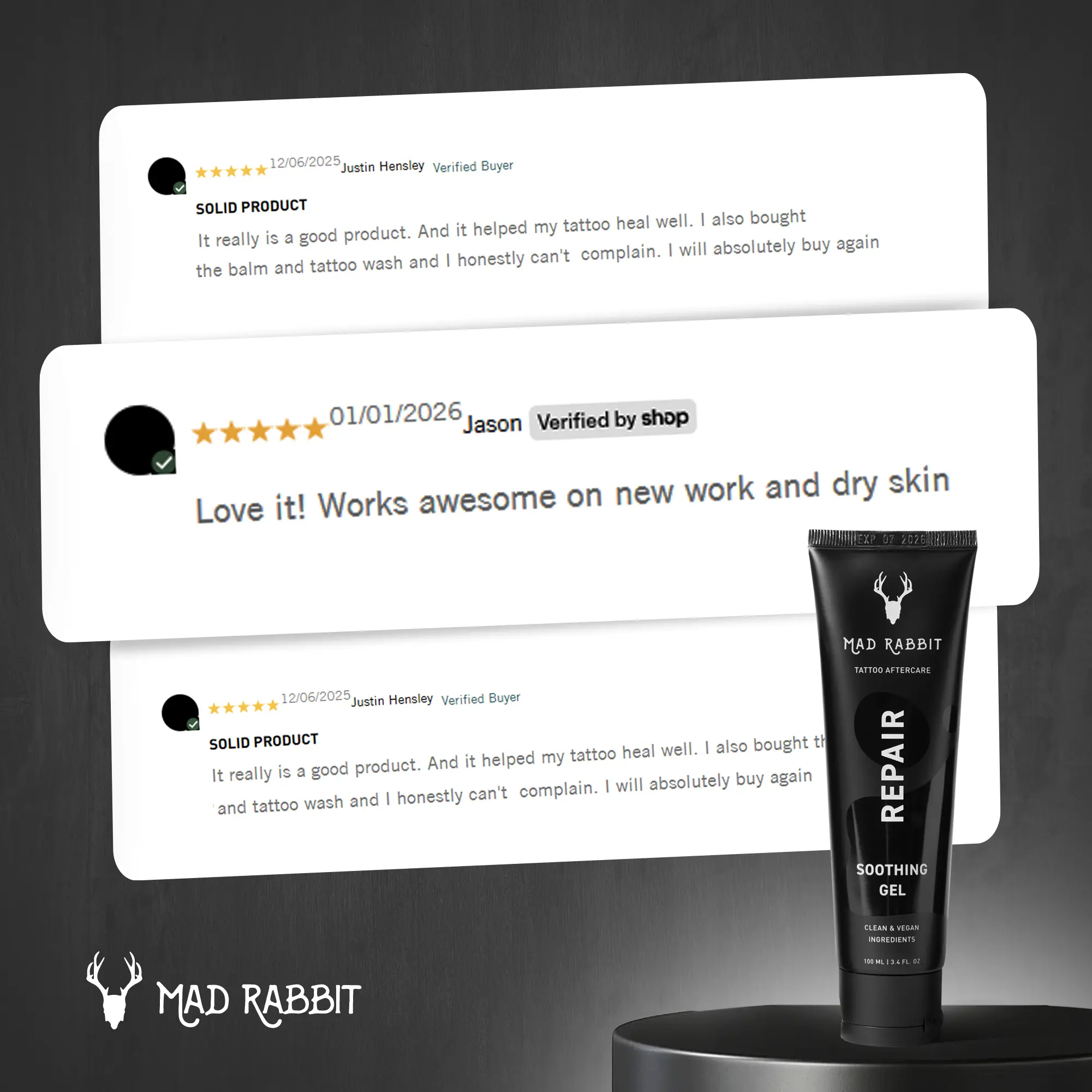 I’ve been using Mad Rabbit’s Tattoo Soothing Gel and honestly, it’s a game changer. The cooling relief kicks in right away and takes the sting and itch out of fresh ink. It’s lightweight, not greasy, and my skin feels calmer and less red within minutes. The only downside is it can feel a little sticky at first, but once it settles, it’s perfect. Definitely one of the best aftercare products I’ve tried.