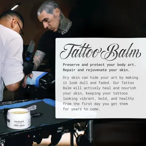 Keep your tattoos looking great with Barker Wellness Tattoo Balm, a natural and vegan solution for preserving and protecting your artwork.